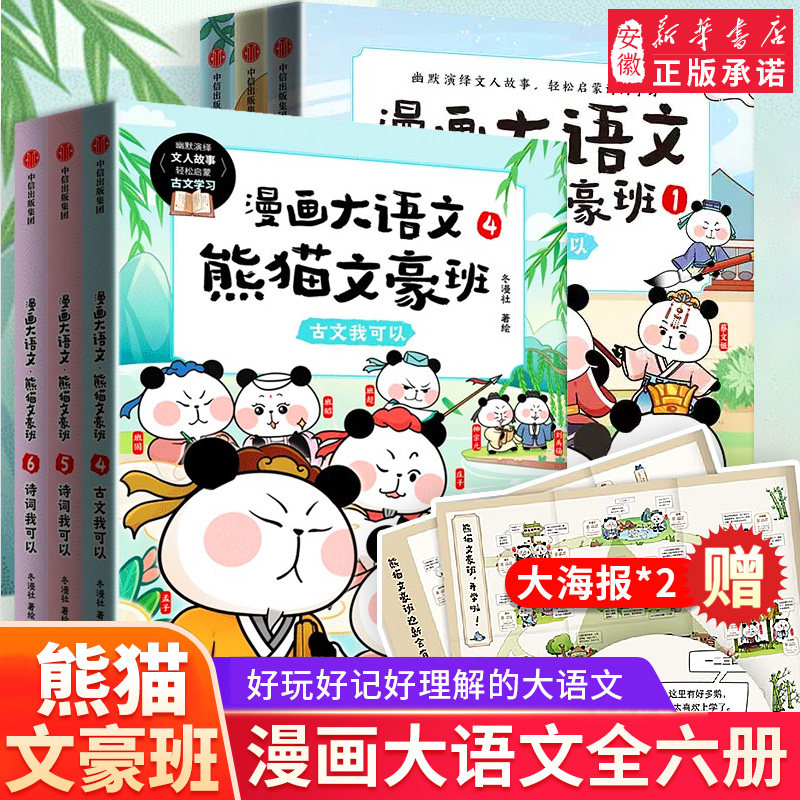 天猫【8-12岁】漫画大语文熊猫文豪班全9册 人气冬漫社著 儿童绘本 幽默风趣语文启蒙文人故事书漫画+学习两不误 懂文知人识事熊猫战神