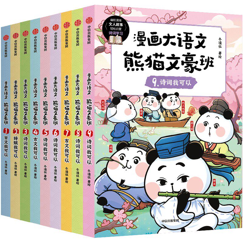 《漫画大语文熊猫文豪班》(全9册)专为8-12岁儿童打造,由人气冬漫社精心创作。本书以萌趣可爱的熊猫为主角,化身“文豪”穿越古今,用幽默风趣的漫画形式讲述李白、杜甫、苏轼等文人大家的成长故事与经典作品。内容融合语文知识与历史背景,让孩子在笑声中“懂文、知人、识事”,轻松掌握诗词典故与文学常识。图文结合,寓教于乐,真正实现“漫画+学习两不误”。书中还融入“熊猫战神”等趣味元素,激发阅读兴趣,是孩子语文启蒙、提升人文素养的理想读物,助力快乐学语文,轻松赢未来!