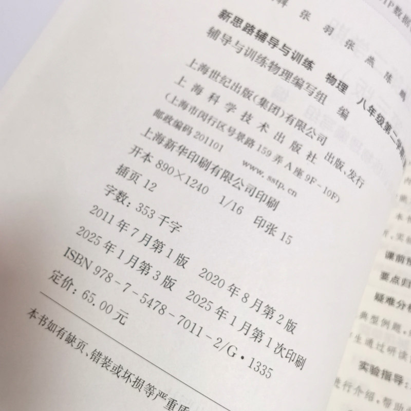 《新版新思路辅导与训练 物理(八年级 上册/下册)》是与上海初中物理教材(上海科学技术出版社)同步配套的课后练习辅导书,适用于八年级第一、二学期。本书紧扣课程标准,内容覆盖教材各章节知识点,题型丰富,难易适中,注重基础巩固与能力提升相结合。每节配有典型例题解析和分层训练题,帮助学生理解概念、掌握方法。全书附详细参考答案,便于学生自查自纠,提升学习效率。作为一线教学经验丰富的教师编写,本书旨在帮助学生夯实物理基础,培养科学思维,是八年级学生课后复习、同步训练的理想辅导资料。