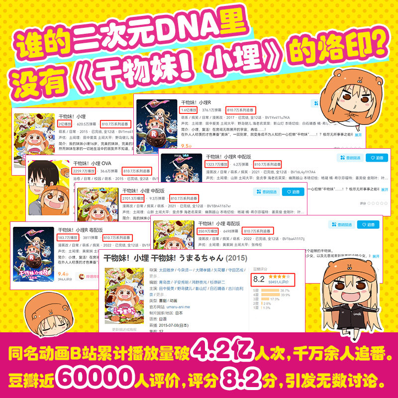 《干物妹!小埋》全12册简体中文版(含特典版与普通版)是官方正版引进的日本超人气萌系漫画,改编自三角头创作的同名动漫。作品讲述在外完美、在家变身“干物女”的小埋与哥哥同居的温馨搞笑日常,融合可爱画风、轻松剧情与高口碑设定,被誉为“二次元萌物鼻祖”。B站累计播放量高达4.2亿,深受观众喜爱。漫画延续动画精髓,细节丰富,角色生动,是收藏与阅读的双重享受。无论是特典版的精美赠品,还是普通版的流畅阅读体验,皆能带领读者沉浸于小埋的萌趣世界,感受治愈系日常的魅力。