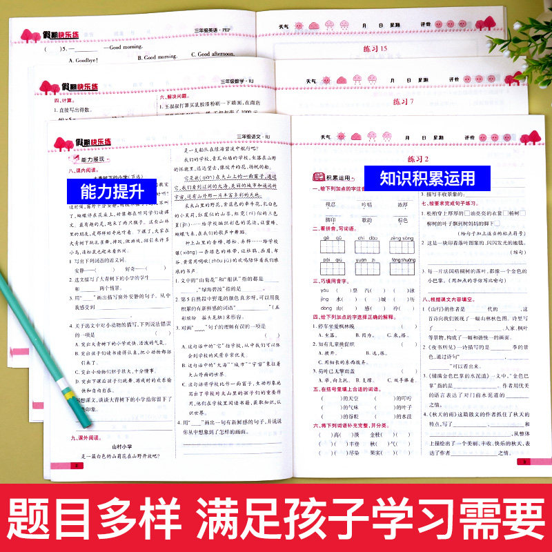 2026新版三年级上册语文、数学、英语寒假作业(人教部编版)专为小学三年级学生设计,涵盖语数英三科重点知识,注重基础巩固与能力提升。本习题集结合上册复习与下册预习,设置“寒假期快乐专项训练”模块,题型丰富、难度适中,包含字词句训练、阅读理解、计算应用、英语听说读写等综合练习。通过假期衔接训练,帮助学生温故知新,平稳过渡新学期。内容紧扣教材,编排科学,配有详细答案解析,适合学生自主学习与家长辅导使用,是寒假高效学习、夯实基础的理想辅助资料。