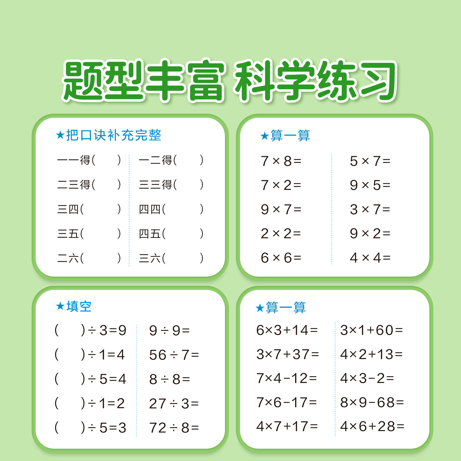 天猫二年级数学九九乘法表口诀练习题人教版同步表内99乘法除法入门口诀表专项练习本练习册作业本课业本口算题卡小学生计算题强化训练