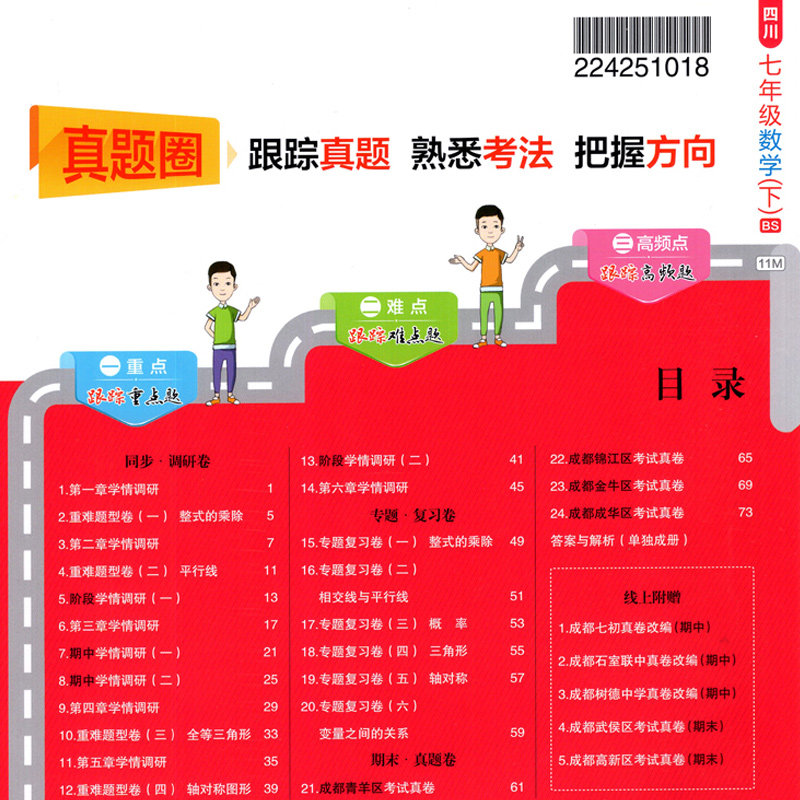 《四川成都名校真题试卷》专为初中七、八年级学生打造,涵盖语文、数学、英语、物理、历史等学科,同步人教、教科版教材,精准对接成都地区教学实际。试卷精选成都重点中学期中期末真题,题型典型、难度适中,全面考查基础知识与综合能力。设有单元测试卷、期中、期末模拟卷及综合练习,帮助学生查漏补缺、提升应试能力。“真题圈专版”突出地域特色,紧扣本地考情;“金星真卷”系列权威可靠,解析详尽,助力学生高效备考。适合课前预习、课后巩固及考前冲刺,是提升学业成绩的理想教辅资料。