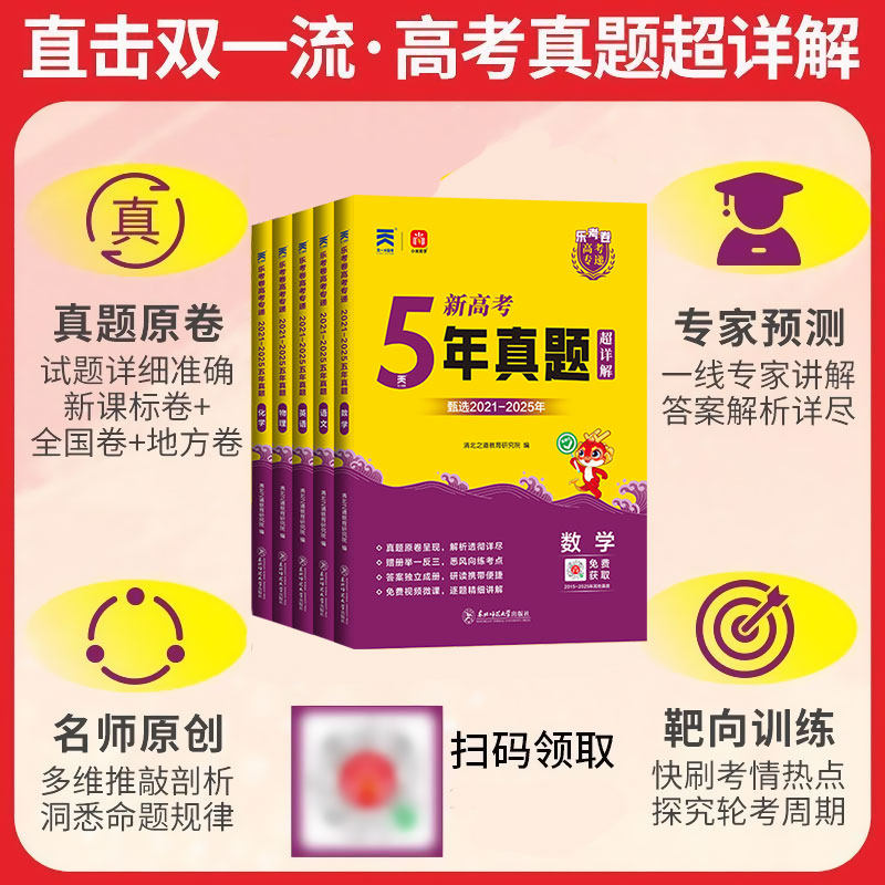 《2026年新高考5年真题超详解》是一套专为高中生冲刺“双一流”高校打造的高质量备考丛书,涵盖语文、数学、英语、物理、化学、生物、政治、历史、地理九大学科。精选近五年高考真题及天一大联考等权威模拟题,逐题精析,直击考点,强化解题思维与应试技巧。丛书由“小尚同学乐考卷”团队精心编撰,紧扣新课标与新高考命题趋势,注重基础与能力提升并重。配套冲刺卷模拟实战,帮助学生查漏补缺,高效备考。无论是知识梳理、题型突破,还是临考冲刺,本系列均为高中生通向理想学府的得力助手,助力学子圆梦名校。