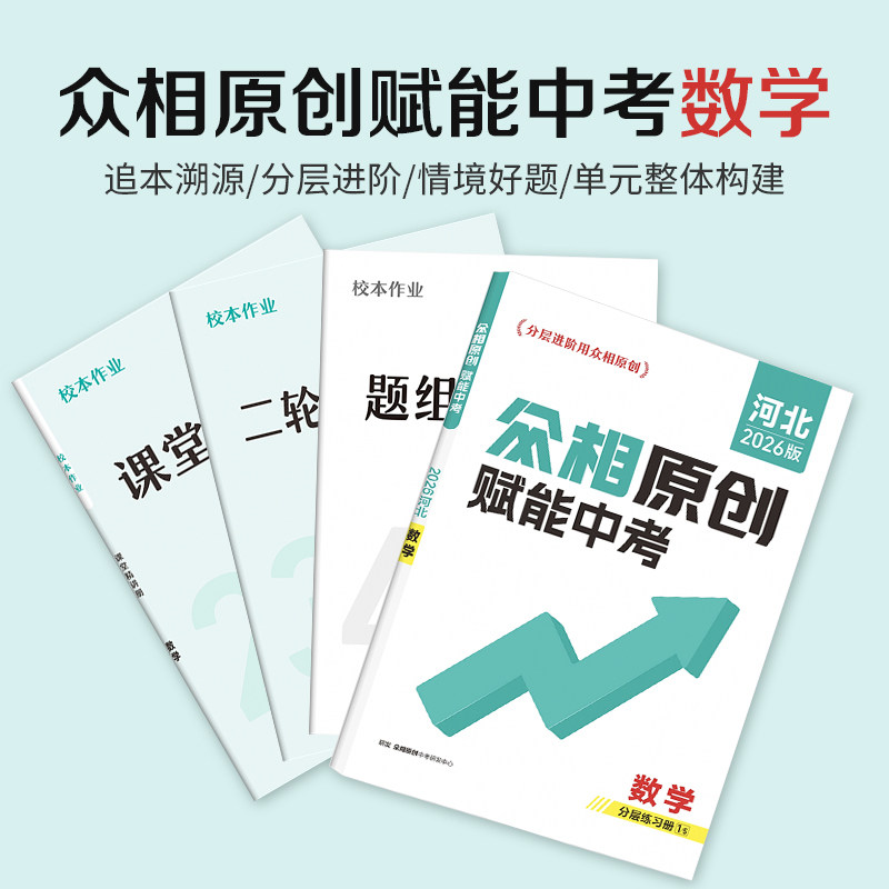 《众相原创赋能中考·河北专版2026》是一套全新升级的初中复习总资料,专为河北中考学子打造,涵盖语文、数学、英语、物理、化学、历史、政治、地理等全学科。紧扣河北中考考纲与命题趋势,内容科学分层,适配不同学力学生,助力课堂高效教学与个性化学习。配套人教版地理视频讲解,直观解析重难点;精选原创试题与分层练习,强化知识巩固与能力提升。每科均配有同步作业与答案详解,实现讲、学、练、测一体化。融合地域特色与最新课改理念,是河北初中生冲刺中考的权威、实用、高效复习利器。