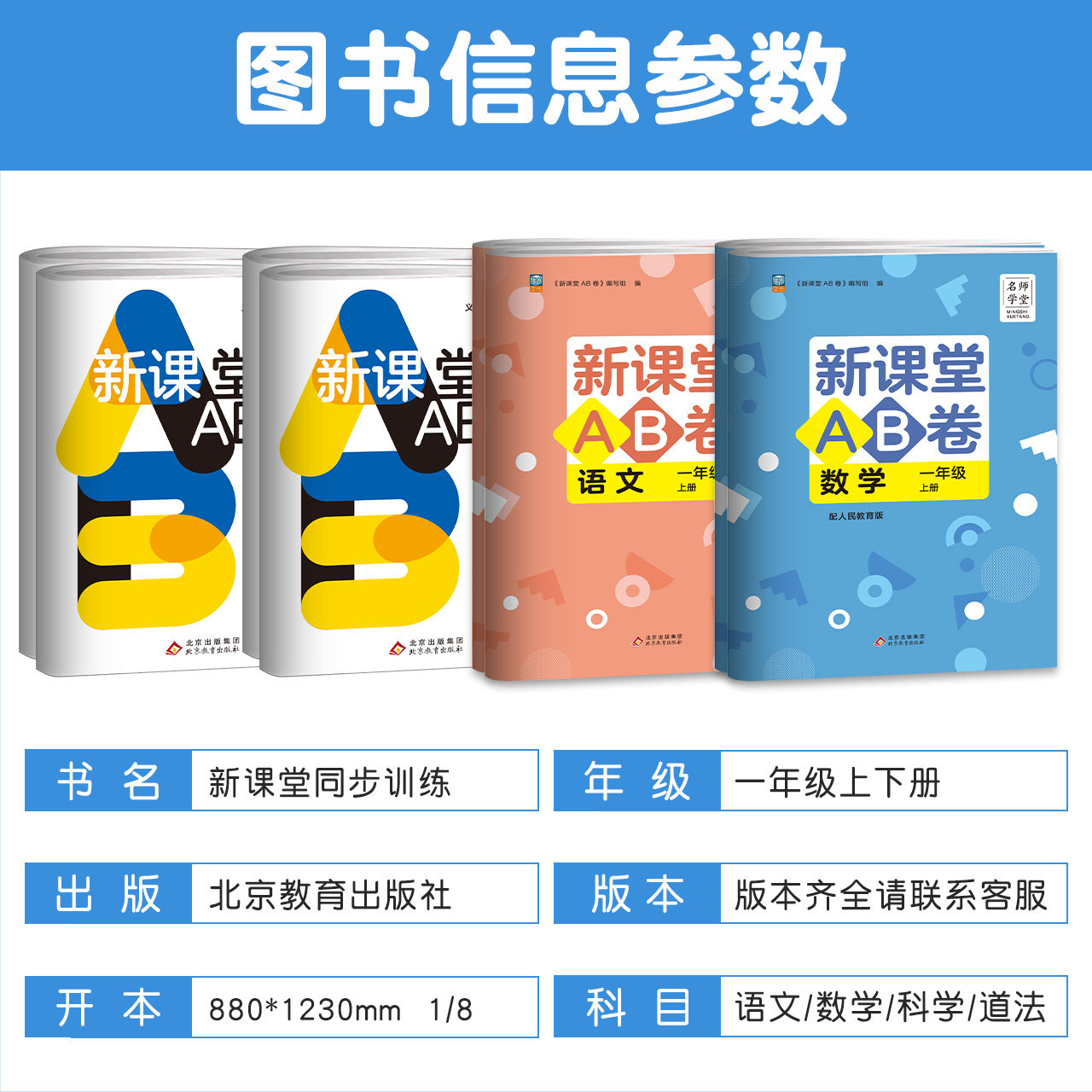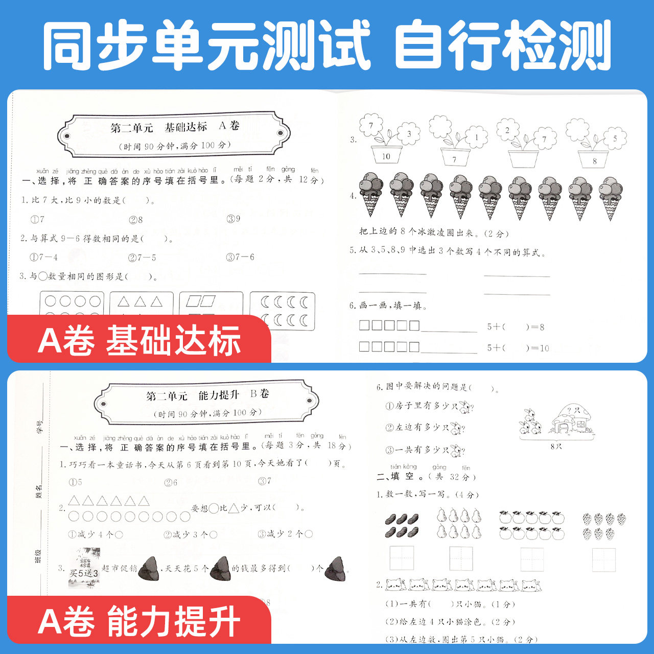 天猫名师学堂 新课堂AB卷小学一年级上下册语文数学试卷全套人教版 冲刺100分单元测试训练综合模拟期中期末考试总复习试卷同步训练