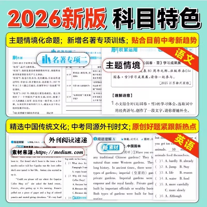 2026新版《初中必刷题》涵盖七年级至九年级数学、语文、英语、物理、政治、地理、历史、生物全学科,适配人教版、苏教版等主流教材。丛书按学期分册,紧扣新课标与中考考点,精选典型例题与分层练习题,注重基础巩固与能力提升。每册配有详细解析,帮助学生理解解题思路,强化知识应用。题型设计科学,包含单元测、期中期末卷及专项训练,助力学生系统复习、高效备考。无论是同步练习还是考前冲刺,《必刷题》都是初中生夯实基础、提升成绩的理想选择,助力学子稳步提分,决胜中考。