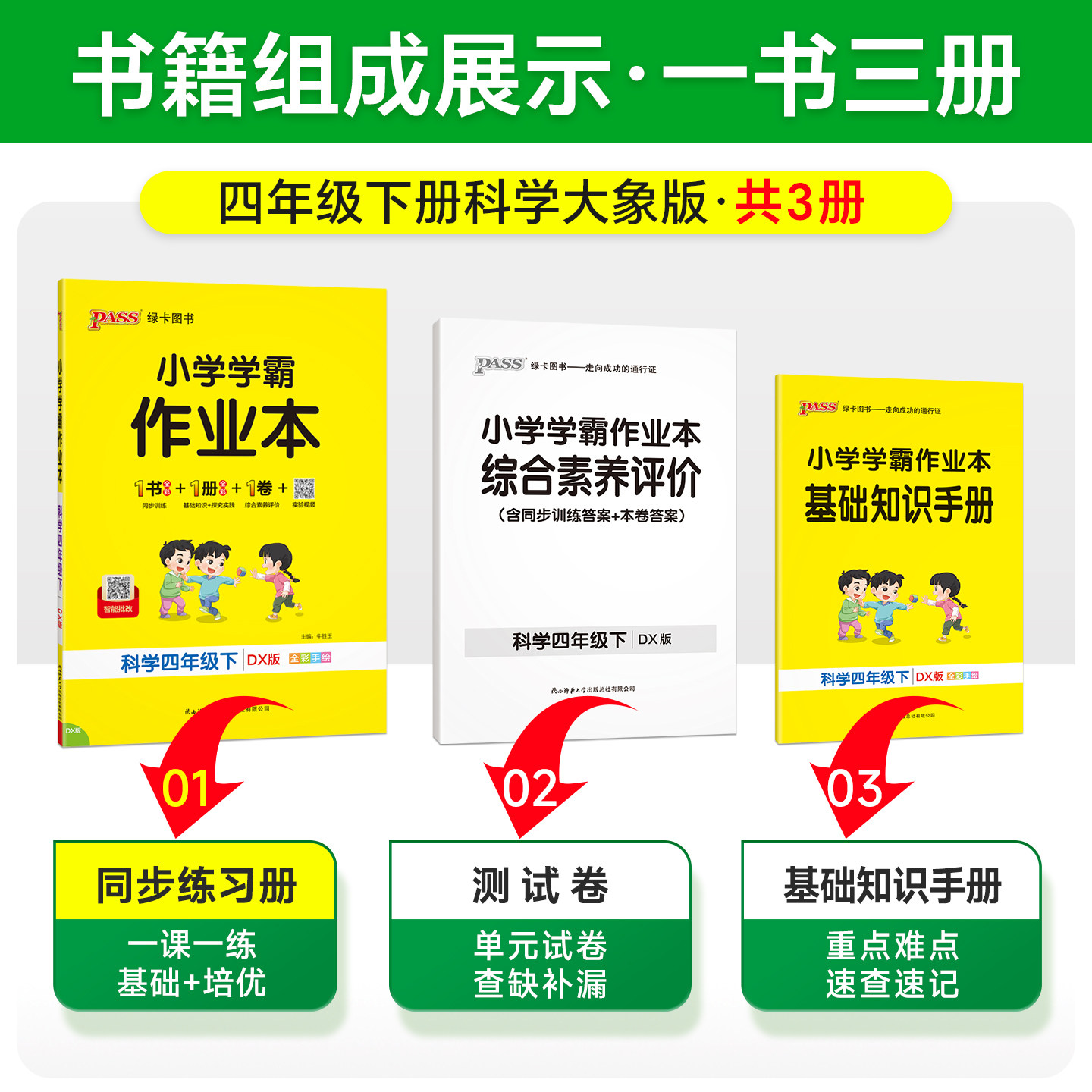 天猫【大象版】科学小学学霸作业本三年级四五六年级上册下册课本同步练习册知识点提优训学生练习题达标测试卷子天天练PASS绿卡图书