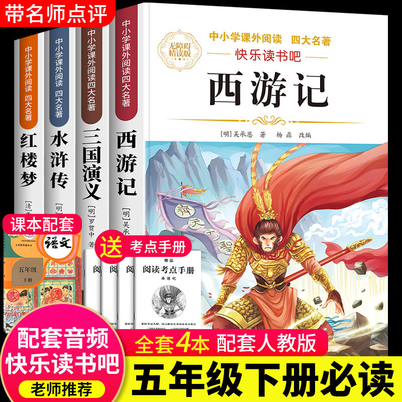 天猫四大名著原著正版五年级下册西游记三国演义小学生版快乐读书吧五年级必读的课外书水浒传红楼梦四大名著全套青少年版完整版人教版