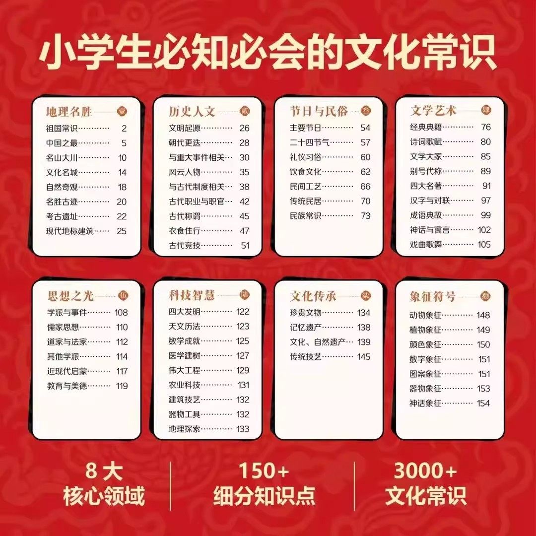 《我是中国人所以我知道》(正版全套2册)是一套专为中小学生打造的课外阅读百科丛书,涵盖“孩子必知的文化常识3000问”与“学生必会的名著考点2000问”两大主题。本书系统梳理中华优秀传统文化核心知识,精选中外经典名著考点,内容权威、语言生动,兼具知识性与趣味性。通过问答形式激发孩子阅读兴趣,帮助夯实语文基础,提升文化素养与应试能力。适合小学高年级至初中生阅读,是拓展视野、传承文化、备战考试的优质读物,助力孩子在轻松阅读中成长为有根有魂的中国少年。