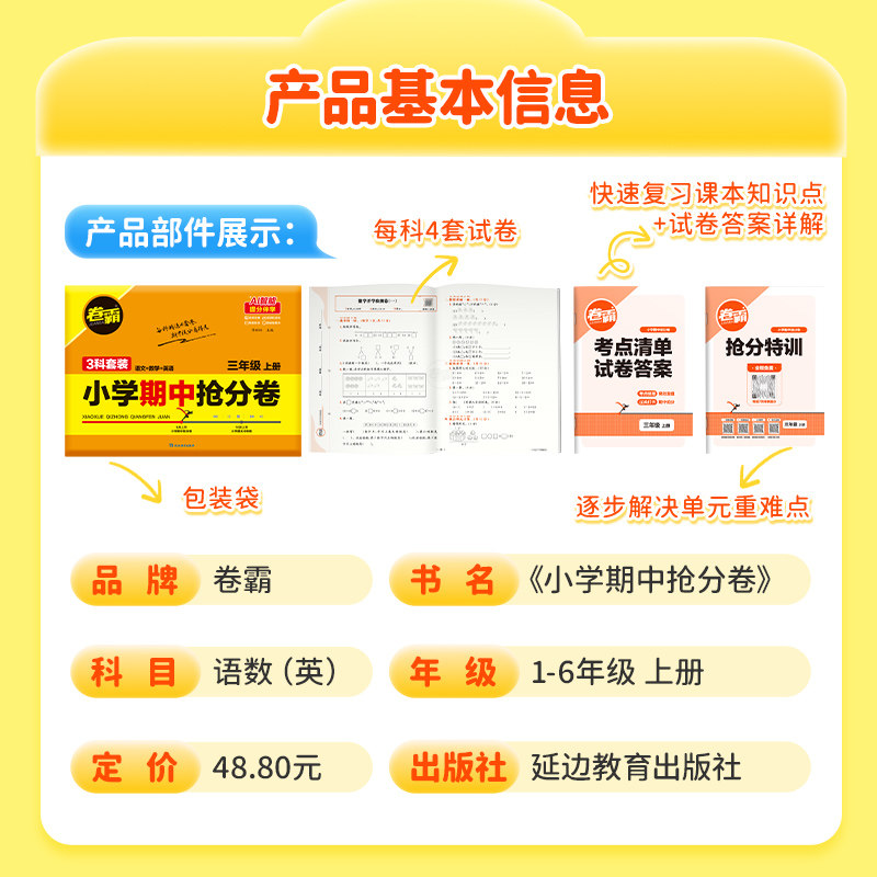 淘宝2025卷霸小学期中抢分卷语文数学英语一二三四五六年级上册123456年级期中训练册练习题人教版试卷练习册专项期末冲刺卷金太阳教育