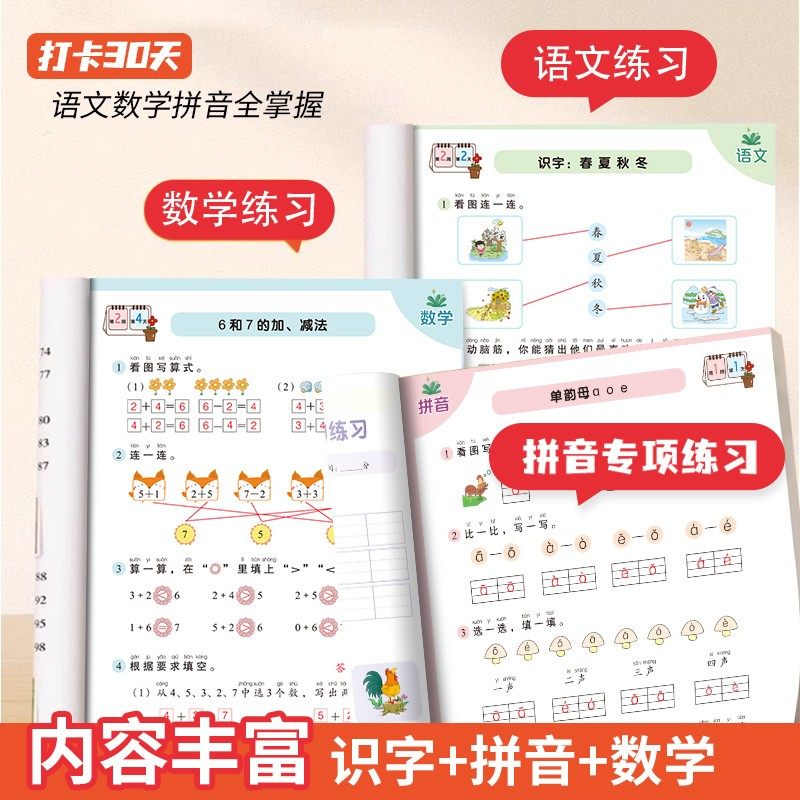天猫2025年新版幼小衔接寒假作业幼升小寒假衔接一本通语文数学拼音三合一专项训练学前班思维训练一年级入学准备练习题册假期一日一练