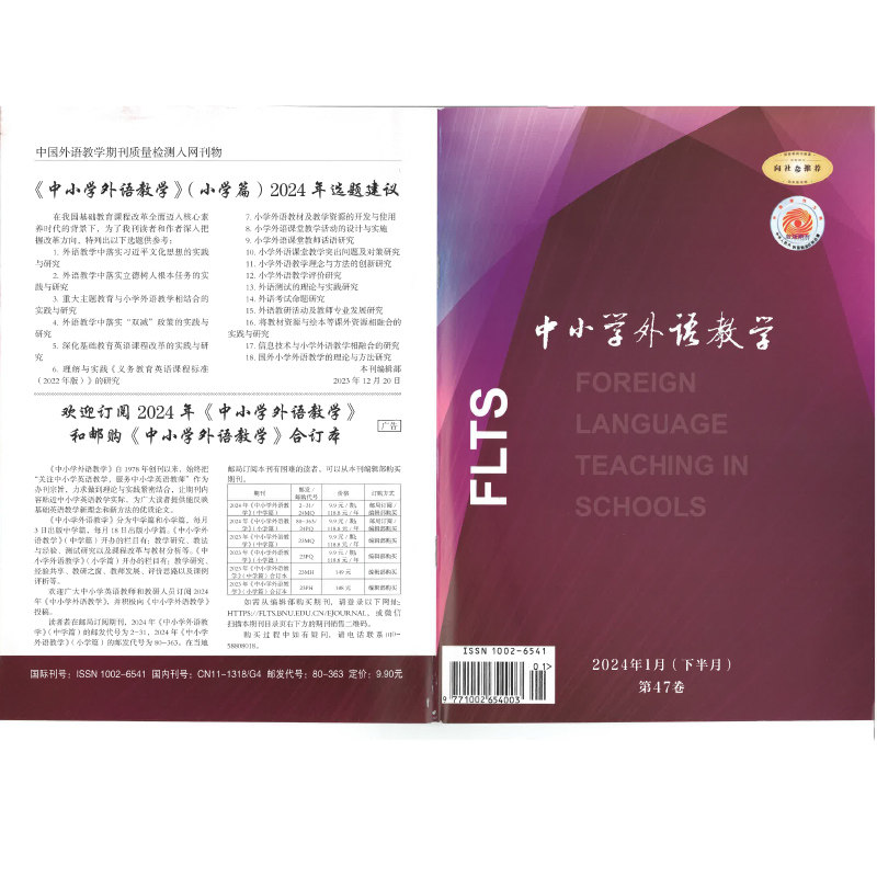 《中小学外语教学》(下半月·小学篇)是一本专注于小学英语教学研究与实践的专业期刊,自2026年1月起订,全年共12期。该刊紧密围绕新课标理念,聚焦小学英语课堂教学改革、教材分析、教法创新及核心素养培养,汇聚一线教师优秀课例与教研成果,提供前沿教学理论与实用教学策略。内容涵盖听说读写技能训练、跨学科融合、信息技术应用及评价方式探索,助力教师提升专业能力。适合小学英语教师、教研员及师范院校师生订阅,是推动小学英语教育高质量发展的重要学术平台与实践指南。