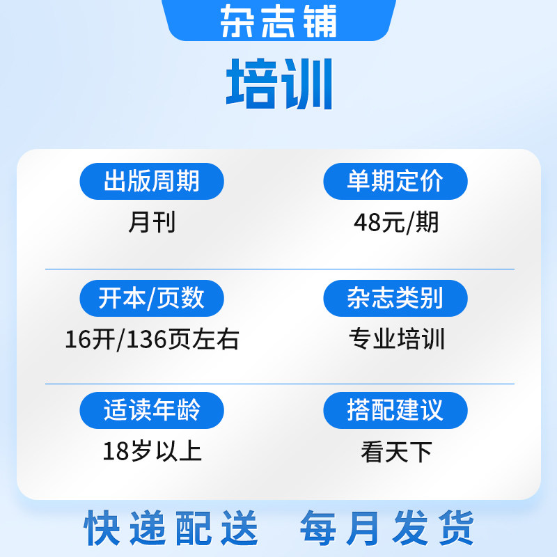 《包邮培训杂志》2026年全年订阅(1月起订,共12期)专为职场人士与企业HR精心打造。杂志聚焦人才发展、职场晋升与企业培训前沿动态,每期推出“企业培训与人才发展特别报道”,深度解析行业趋势与实践案例。专栏“名家讲坛”邀请人力资源管理领域权威专家分享真知灼见,助力个人成长与组织效能提升。内容涵盖招聘、培训、绩效、领导力等核心议题,兼具专业性与实用性。通过杂志铺订阅,全年包邮到家,轻松获取最新知识资源,是HR从业者、管理者及职场精英提升专业素养的理想之选。立即订阅,开启2026年职业进阶之旅!
