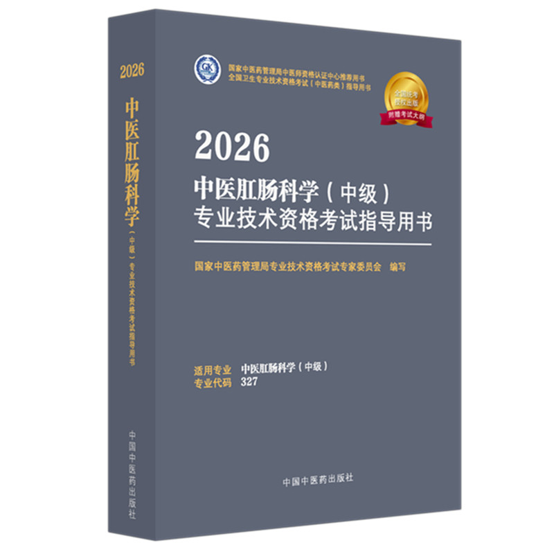《2026年中医肛肠科学(中级)专业技术资格考试指导用书》(专业代码:327)由国家中医药管理局专业技术资格考试专家委员会组织编写,中医药出版社出版。本书紧扣最新考试大纲,系统涵盖中医肛肠科基础理论、常见病证诊疗、辨证论治、外治法及现代医学相关知识,突出临床实用性与考试针对性。内容结构清晰,重点明确,配有典型例题与解析,助力考生掌握核心考点、提升应试能力。作为官方指定辅导教材,本书兼具权威性与指导性,是广大中医肛肠科中级职称考生复习备考的重要参考用书,对规范专业人才培养、提升临床服务水平具有重要意义。
