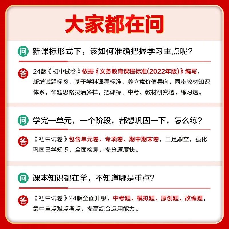 《2026春53五年中考三年模拟》系列同步试卷,涵盖七年级至九年级语文、数学、英语、物理、化学、地理、生物、政治、历史等学科,配套人教版、青岛版、北师大版、沪科版等多种教材版本,精准匹配上下册教学进度。试卷包含单元测、期中、期末测试卷,题型全面,难度梯度合理,精选近五年中考真题与三年模拟题,强化知识巩固与应试能力。每套试卷紧扣课标,注重基础与拓展结合,帮助学生系统梳理知识点,提升综合素养,是初中生同步练习与阶段复习的高效助学工具。