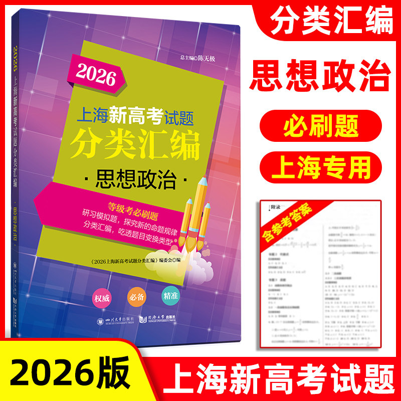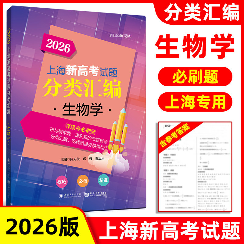《2026上海新高考试题分类汇编》系列专为上海市高一至高三学生设计,紧扣最新高考改革方案,涵盖语文、数学、英语、物理、化学、地理、历史、生命科学、思想政治等九门等级考科目。本书系统整合近五年上海市各区一模、二模及典型模拟试题,按知识点与能力要求科学分类,突出高频考点与易错题型,辅以详尽解析与答题策略。内容贴合新课标与核心素养导向,助力学生夯实基础、提升综合能力,精准应对等级考。无论是阶段性复习还是冲刺备考,均为高中生高效提分的权威资料,是教师教学与学生自主学习的重要参考。