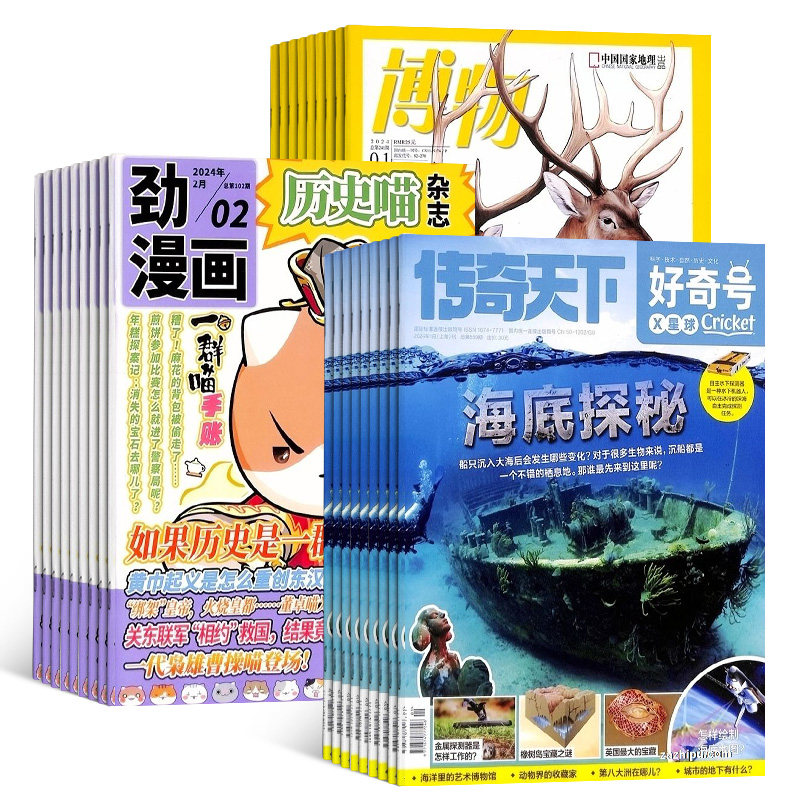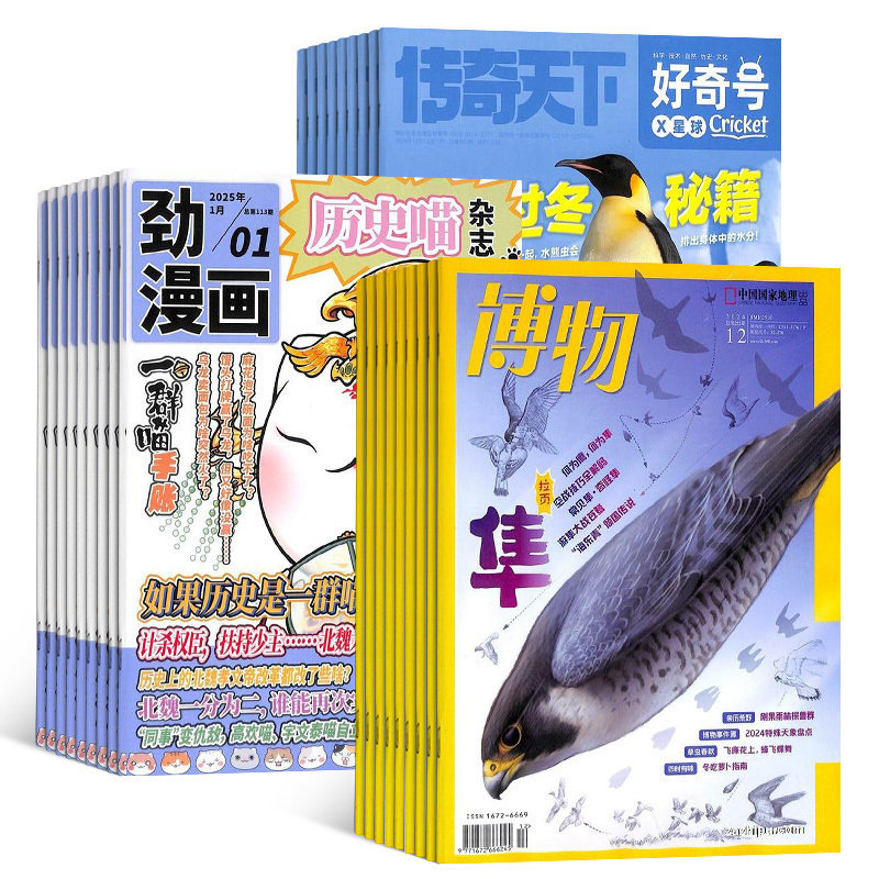 天猫历史喵+好奇号+博物杂志组合 2026年3月起订 1年共36期 杂志铺 全年订阅 幽默风趣历史漫画书 少儿科普小学生课外阅读期刊杂志