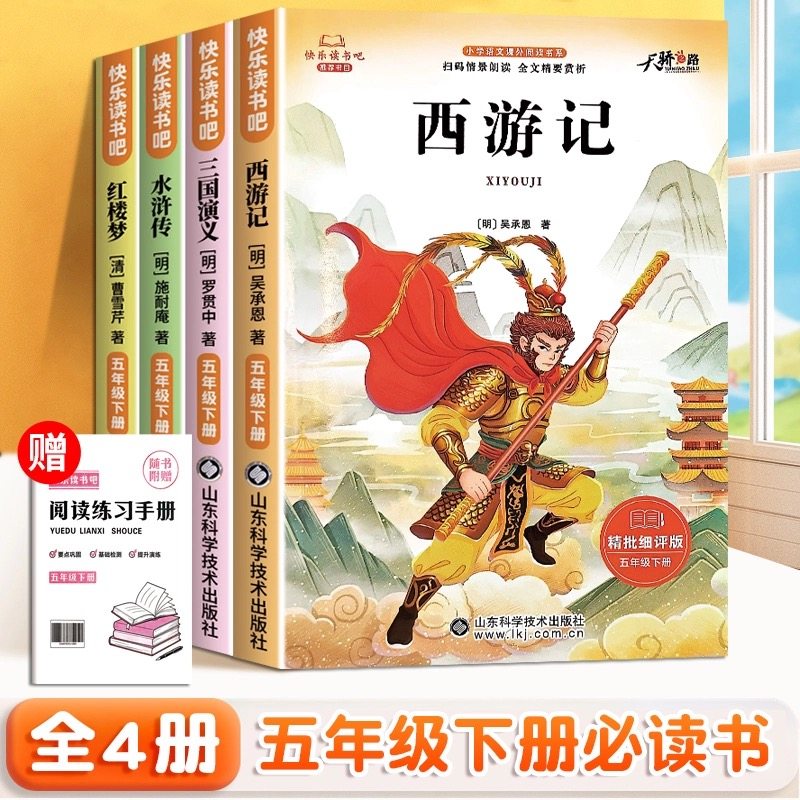 人教版快乐读书吧五年级下册全套4本西游记上下册+红楼梦+三国演义+水浒传四大名著原著正版小学生必读课外书青少年人民教育出版社
