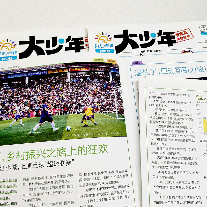 《阳光少年报·初中版》专为初中生打造,聚焦新闻时事热点,精选国内外重要新闻、社会动态与科技人文资讯,语言生动、视角独特,兼具思想性与可读性。每期内容紧扣课标,助力作文素材积累与思辨能力提升,是优质的课外阅读与语文学习辅助读物。提供过刊合订本、周投/月投订阅及试读服务,支持团购优惠。现已开启2025—2026年度征订,覆盖初一至初三全年级,帮助青少年拓宽视野、树立正确价值观,做有理想、有担当的新时代阳光少年。