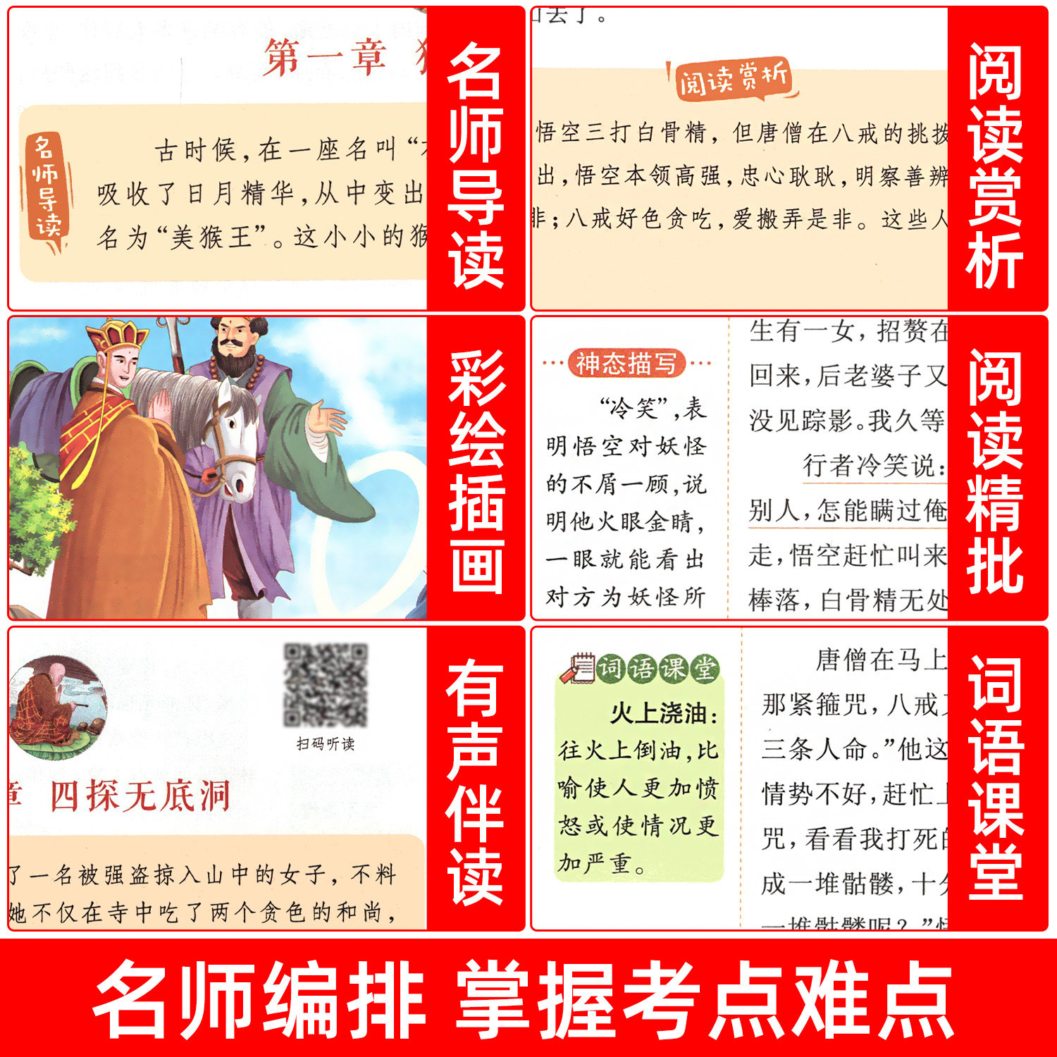 西游记小学生版五年级下册必读课外书 四大名著原著正版五下快乐读书吧5下阅读书籍经典书目青少年版本中国四大名著白话文版非完整
