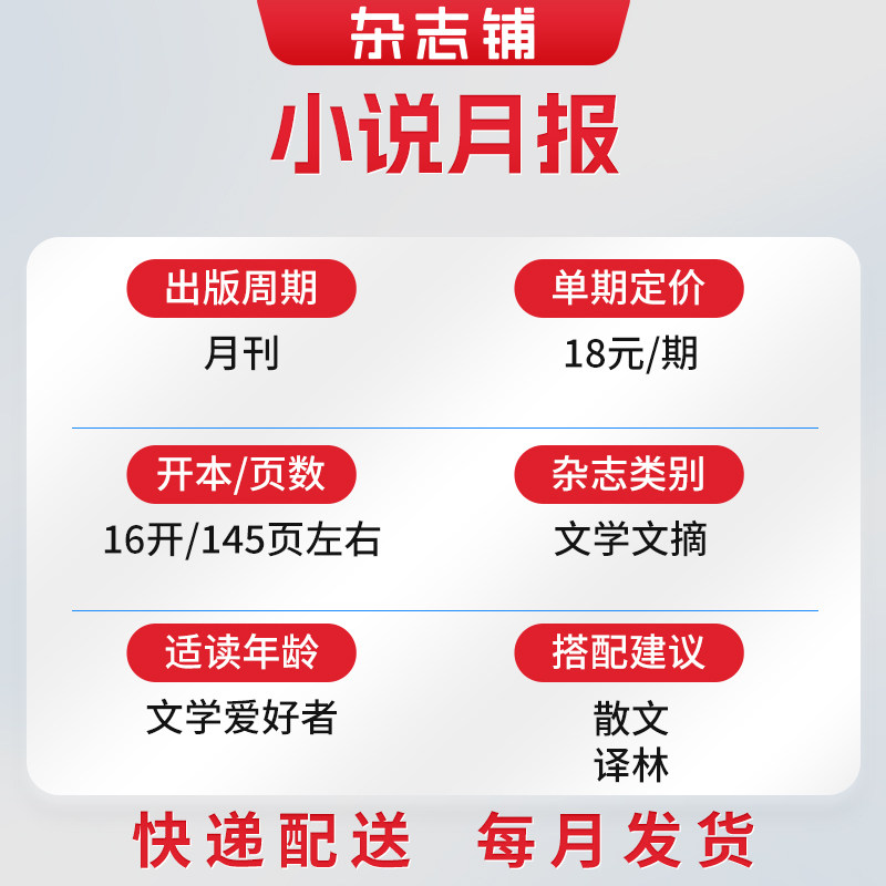天猫小说月报杂志 2026年1月起订阅杂志铺 1年共12期 小说文学选刊历史人文文学读物青春文学图书 文学文摘期刊杂志订阅