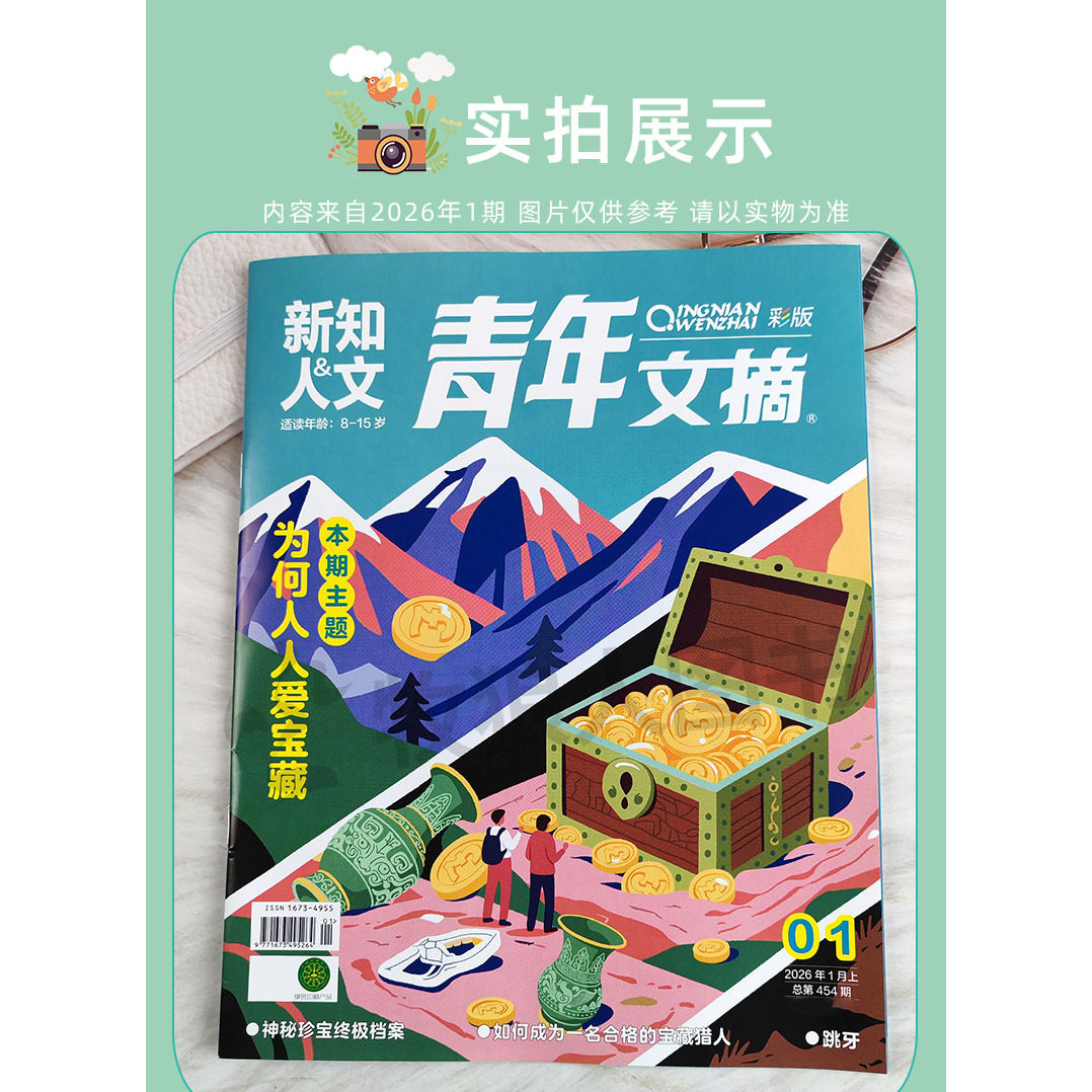 天猫【赠卡片】青年文摘彩版杂志2026年2月上03期(另有1-4期/2025年1-24期/全年订阅)新知人文读者意林作文素材课外文学文摘过刊单本