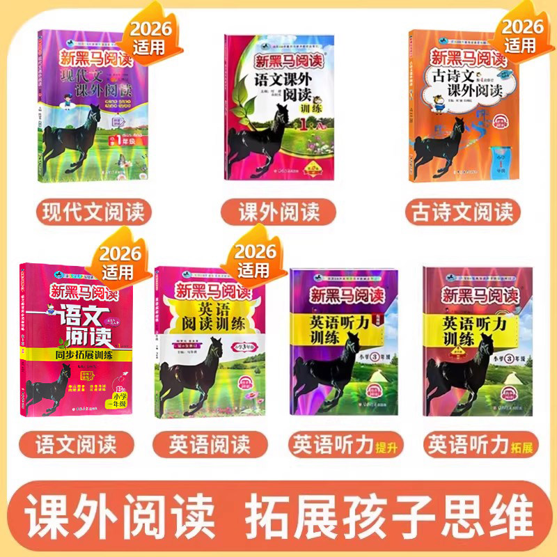 《2026适用新黑马阅读》是一套专为小学1-6年级学生设计的语文与英语课外阅读与听力强化训练丛书,紧扣人教版教材,覆盖上下册内容。丛书精选现代文经典篇目,搭配阶梯式阅读理解题,注重思维训练与语言积累,帮助学生提升阅读能力与答题技巧。同时融入英语听力专项练习,每日一练,培养语感与听力习惯。题型丰富、难度适中,配有详细解析,便于学生自主学习与家长辅导。无论是巩固课内知识,还是拓展课外能力,《新黑马阅读》都是小学生提升语文综合素养和英语听读水平的优质教辅,助力学生在学业中脱颖而出,成为真正的“黑马”。