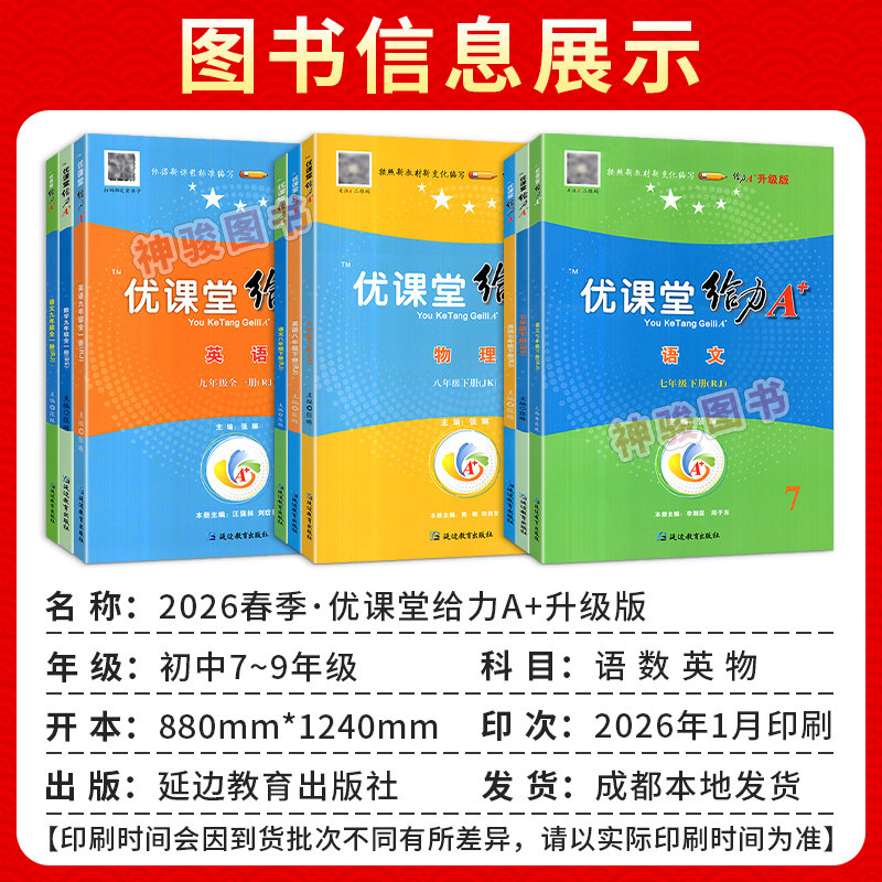 新版《蓉城优课堂给力A+》是一套专为初中生设计的同步教辅丛书,涵盖七、八、九年级语文、数学、英语三科,适配部编人教版和北师大版教材。丛书按课前预习、课中导学、课后巩固三大环节编排,配备丰富的练习题、单元检测卷及完形填空专项训练,全面夯实基础知识,提升综合应用能力。内容紧扣新课标,题型新颖,梯度合理,既有知识梳理,也有拓展提升,帮助学生高效掌握重点难点。无论是日常学习还是考前复习,都能提供有力支持,是初中生提升学业成绩的理想学习伴侣。