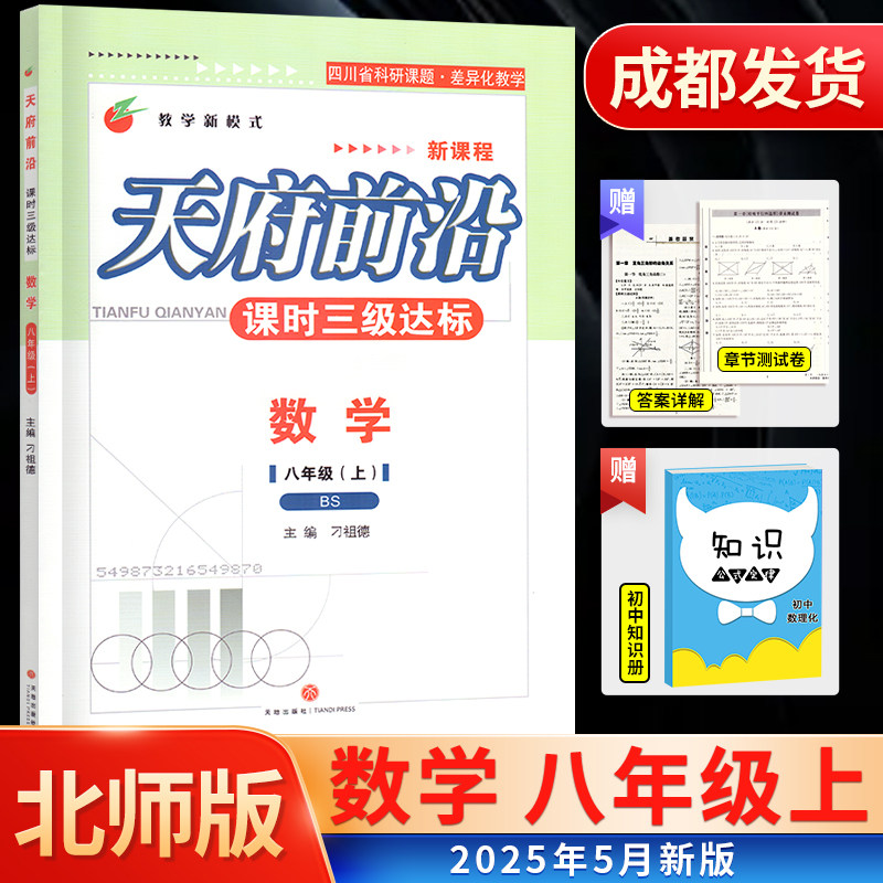 2025版《天府前沿》同步练习册,专为成都初中生打造,涵盖七、八、九年级数学(北师大版)及九年级物理(教科版),上下册同步配套。丛书紧扣教材知识点,精选典型例题与分层训练题,强化基础、提升能力。每章配有单元测试卷,并附成都中考数学真题卷,帮助学生熟悉本地命题风格,精准把握考点。题型设计科学,难易梯度合理,兼顾巩固与拓展,适合课堂同步练习与课后复习使用。答案详解清晰,便于学生自查自纠,是提升学业成绩、备战中考的高效学习资料。
