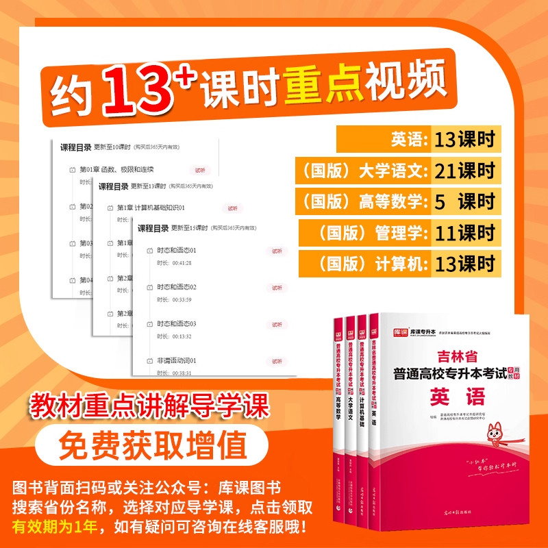 库课备考2026吉林专升本公共英语复习资料,专为统招专升本考生精心打造,涵盖法学、管理学、学前教育学、心理学、会计学、语文等多个专业科目。资料内容系统全面,包含英语词汇、语法精讲、历年真题、模拟试卷及必刷练习题,紧扣吉林省专升本考试大纲,帮助考生夯实基础、突破重点难点。精选高频考点,强化实战训练,提升应试能力。无论是基础薄弱还是冲刺提分,都能提供高效备考支持。配套教材解析清晰,题型覆盖全面,是吉林专升本考生备考公共英语的理想选择,助力考生顺利通关,圆梦本科。