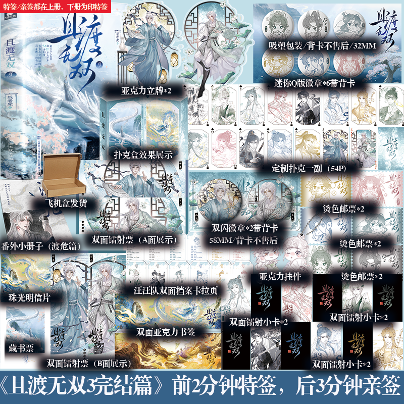 《且渡无双3》(上下完结篇)是现象级口碑青春文学小说,由秦海璐倾情推荐,引发读者热烈追捧。作为系列终章,本书完整呈现主角跨越成长、情感与命运羁绊的动人旅程,新增独家番外篇章,深度补完角色内心世界,令故事更加丰满动人。文笔细腻真挚,情节跌宕催泪,被誉为近年来不可错过的青春之作。现推出【可选特签套装】实体书,含作者亲笔签名、精美书签及限定周边,极具收藏价值。无论是老读者重温感动,还是新读者初入故事,这套完结篇都将带来震撼心灵的阅读体验,为青春画上最温柔的句点。