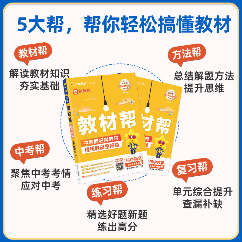2026春初中教材帮七年级下册全套涵盖语文、数学、英语、生物、地理、历史、道德与法治、科学等学科,适配人教版、北师大版等主流教材。由天星教育精心编写,紧扣新课标要求,内容同步课本,系统梳理知识点,重难点突出,配有典型例题与解析。特别设置“学霸预习笔记”板块,帮助学生高效预习、巩固基础、提升思维能力。全书结构清晰,讲练结合,适合初一学生课前预习、课堂学习和课后复习使用,是提升学习效率、夯实学科基础的理想辅导资料,助力学生轻松应对学业挑战。