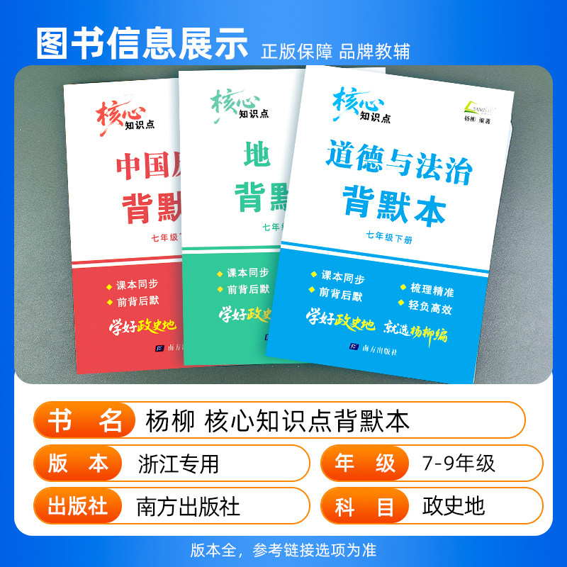 2026春《杨柳背默本》核心知识点精编,专为七、八、九年级学生设计,覆盖上下册政治、历史、地理三科,紧扣人教版新教材及浙江地区教学实际。本书聚焦《道德与法治》、中国历史、世界历史与地理核心考点,系统梳理知识脉络,突出重难点与易错点。练习题型多样,分层训练,注重基础巩固与能力提升,同步课堂进度,助力学生高效记忆与精准应试。内容编排科学,图文并茂,适合日常背诵、课后练习与考前复习,是浙江初中生提升文科综合素养的理想同步练习册。