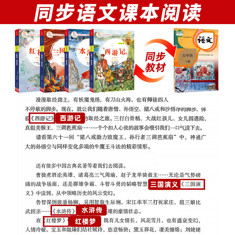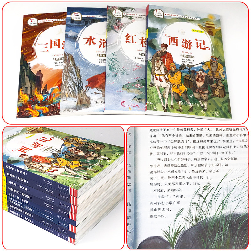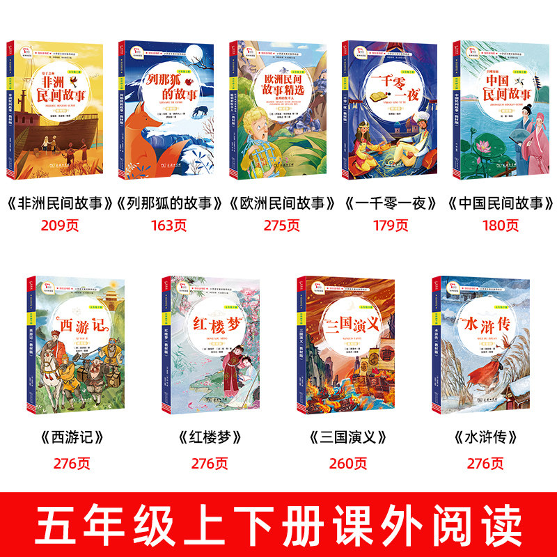 《一千零一夜》《中国民间故事》《非洲民间故事》《欧洲民间故事》以及《聪明的牧羊人》《列那狐的故事》等,是小学“快乐读书吧”推荐读物,适合五年级学生阅读。这些故事充满奇幻色彩与智慧哲理,展现不同文化的魅力。同时,教材版《水浒传》《三国演义》《红楼梦》《西游记》四大名著,语言简练、情节生动,帮助孩子初步领略中华古典文学精华。通过阅读,学生不仅能提升语言能力,还能感受正义、勇敢、忠诚等美好品质,在故事中收获知识与成长,激发阅读兴趣,培养文化自信。