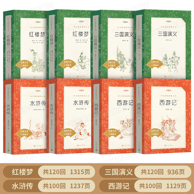 《四大名著》原著正版全套共8册,包括《红楼梦》《西游记》《三国演义》《水浒传》,由人民文学出版社权威出版,是教育部推荐、学校“快乐读书吧”配套读物,适用于小学五年级至初中九年级学生。本套书采用经典原著文本,语言规范,注释详尽,帮助青少年准确理解古典文学精髓。四大名著作为中国古典小说的巅峰之作,不仅情节生动、人物鲜明,更蕴含丰富的历史文化内涵,是提升语文素养、培养阅读兴趣的重要课外读物。全书装帧精美,适合收藏与长期阅读,是中小学生课外阅读的理想选择。