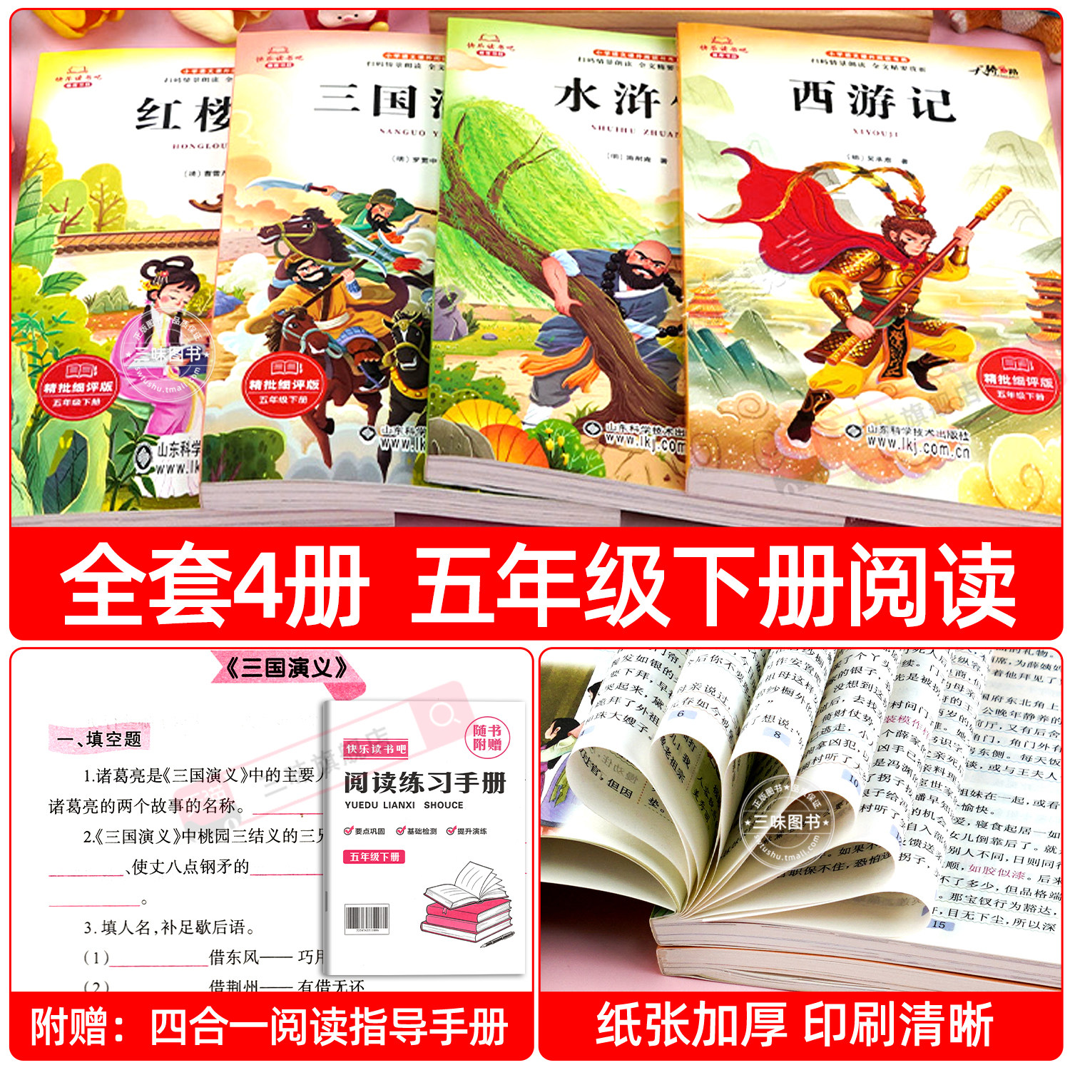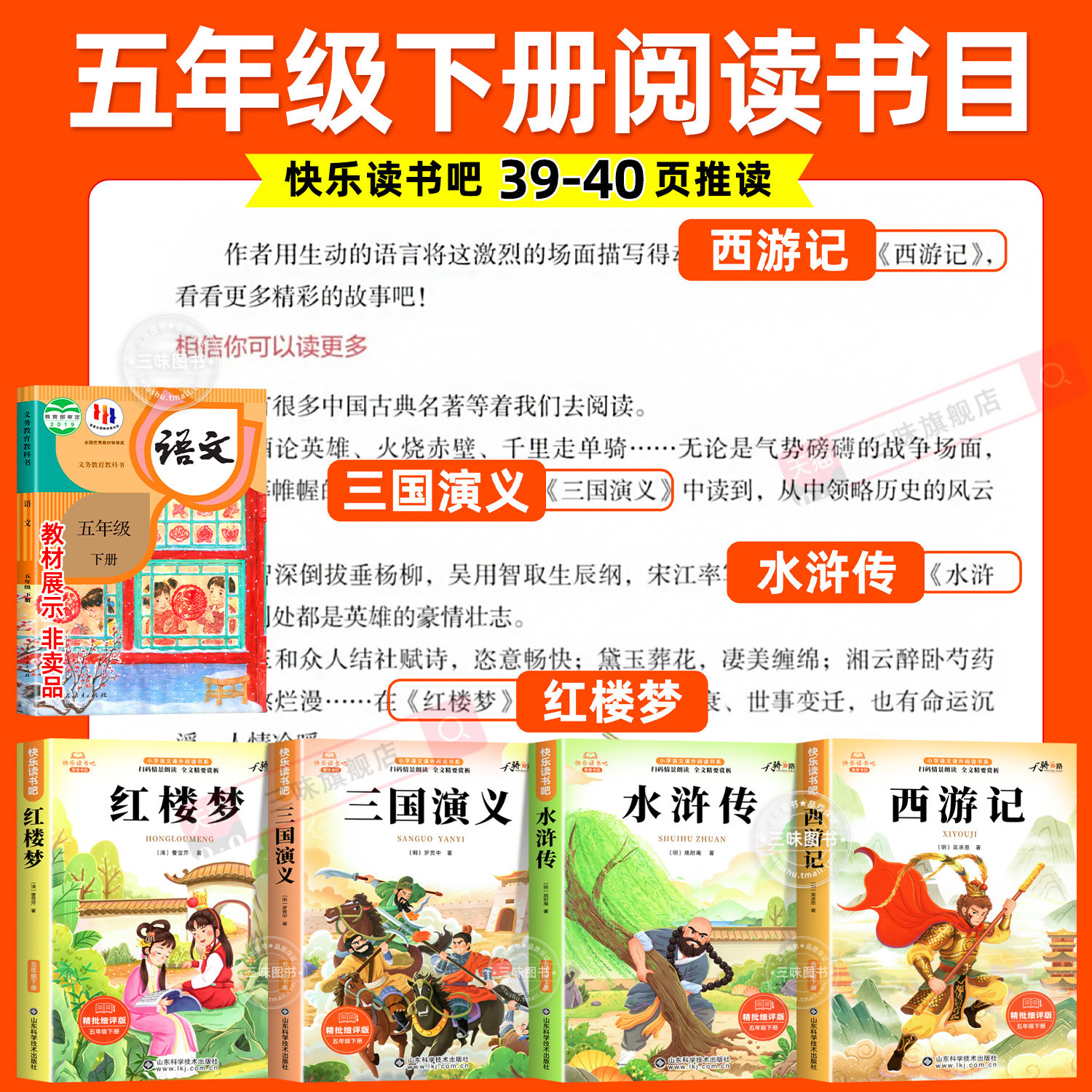 天猫四大名著正版原著五年级下册必读的课外书西游记三国演义小学生版青少年版快乐读书吧5下全套水浒传红楼梦中国配套人教版书籍