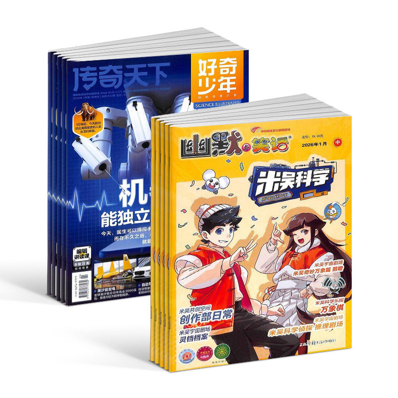【预售26年】小樱桃米吴科学杂志组合,精选《好奇号》《万物》《科学家》《博物》《问天少年》《商界少年》《知识星球》等多款优质期刊,涵盖科学、自然、航天、人文与财商等领域,专为青少年打造全方位知识盛宴。全年12期,每月寄送,内容权威、图文并茂,激发探索欲与思辨力。现推出2026年订阅预售,可任选1年组合,早订享优惠。杂志铺品质保障,正版直发,助力孩子开阔视野、增长见识,是家庭阅读与成长教育的理想之选。立即预订,开启智慧阅读新一年!