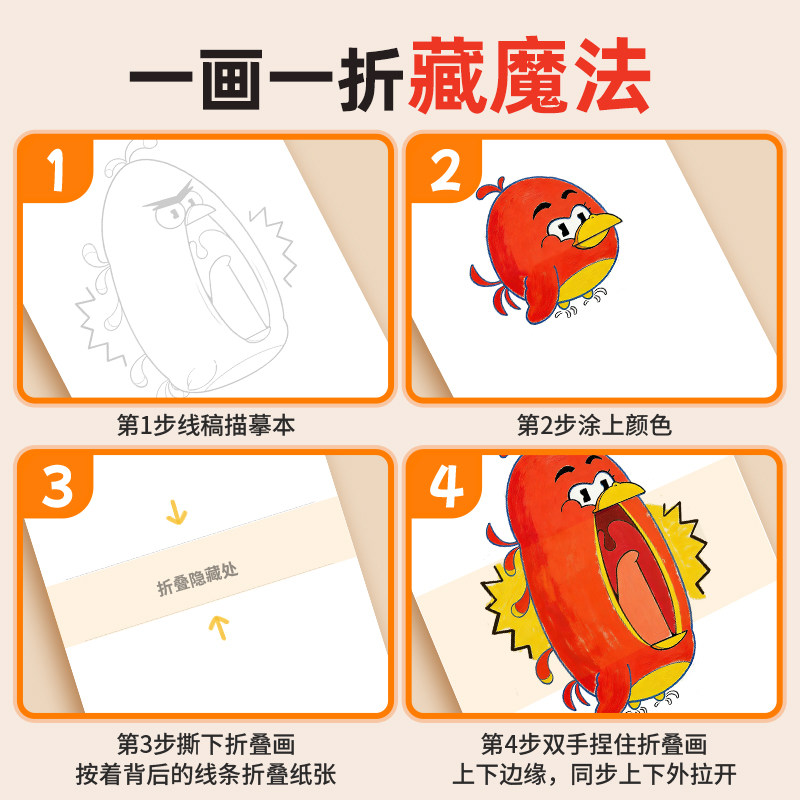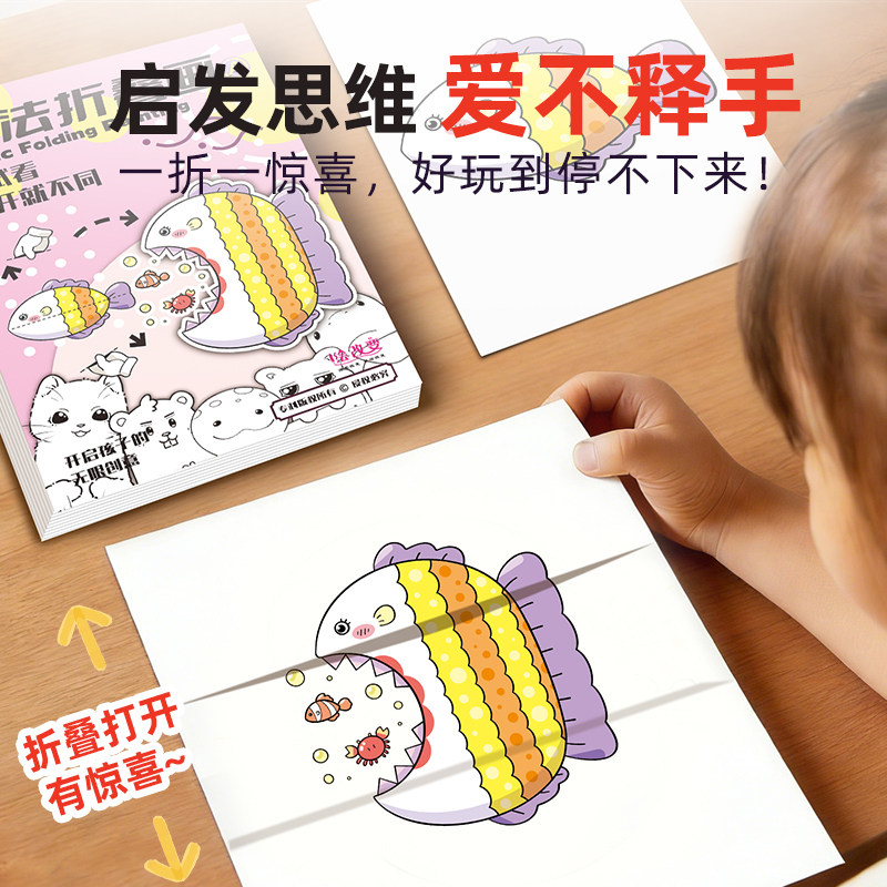 天猫彩色魔法折叠画绘本 儿童益智创意启蒙开发脑力思维逻辑学生少儿临摹画册涂色兴趣涂鸦搞怪绘画描摹本