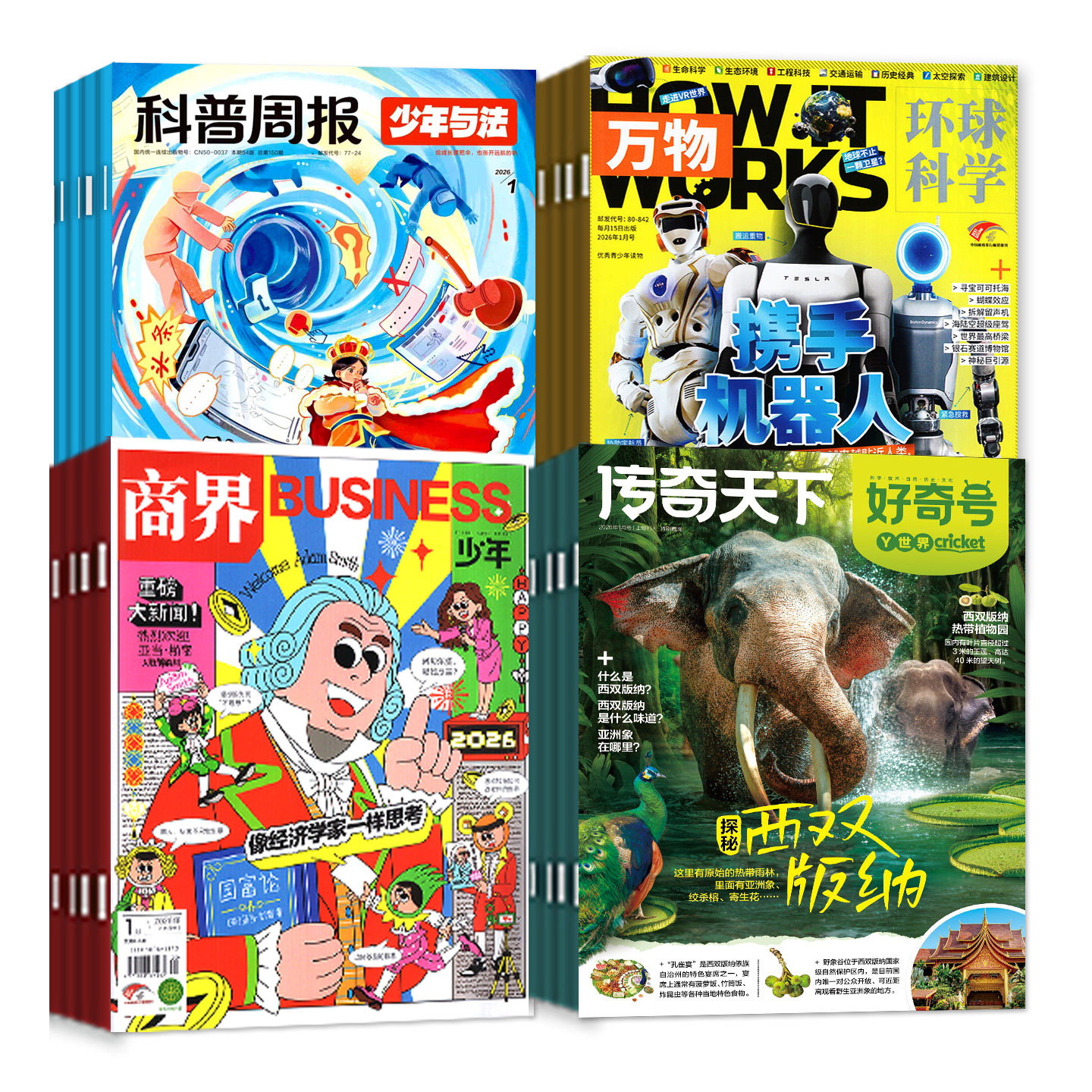 【全年订阅组合】专为青少年打造的科普与法律启蒙读物,精选《科普周报》《少年与法》杂志,搭配《万物》《好奇号》《商界少年》2026年1-12月正刊,内容涵盖科学探索、法律常识、商业思维与全球视野。通过生动案例与趣味解读,让青少年在轻松阅读中了解“原来法律这么有趣”,激发好奇心与思辨力。非2025年过刊,确保内容时效性与前沿性。全年12期持续送达,助力孩子拓宽知识边界,培养综合素养,是家庭教育的优质之选。适合10-16岁青少年订阅,寓教于乐,启智未来。