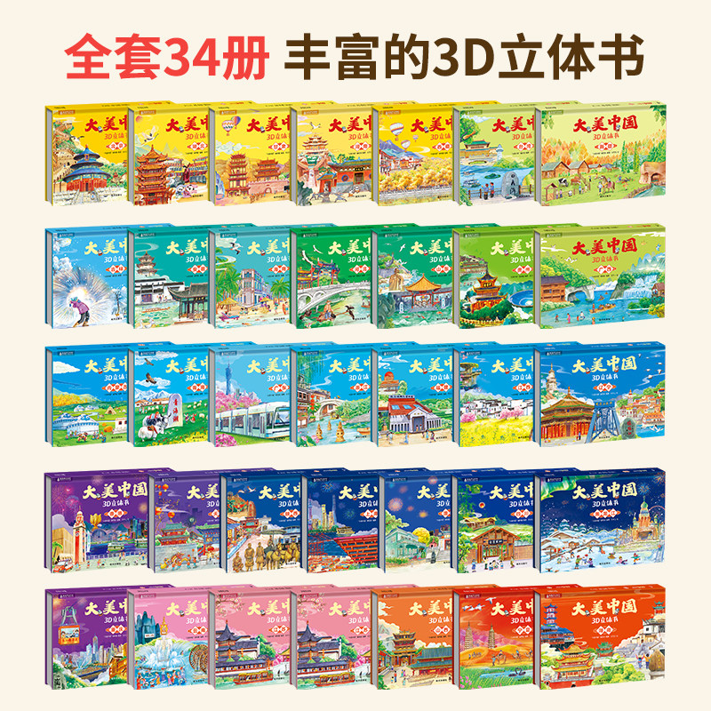 《青葫芦大美中国3D立体书》是一套专为3-12岁儿童设计的中国地理科普绘本,涵盖全国34个省级行政区,以生动有趣的3D立体翻页形式展现各省城市风貌、自然景观与人文特色。书中融合百科知识、趣味漫画与睡前故事,激发孩子探索祖国的兴趣。内容科学严谨又通俗易懂,适合幼儿园早教、小学生课外阅读及亲子共读。通过翻一翻、拉一拉的小机关,孩子在互动中轻松学习地理、历史与文化知识,培养爱国情怀与空间认知能力,是寓教于乐的优质启蒙读物,让“这就是中国”在孩子心中生根发芽。