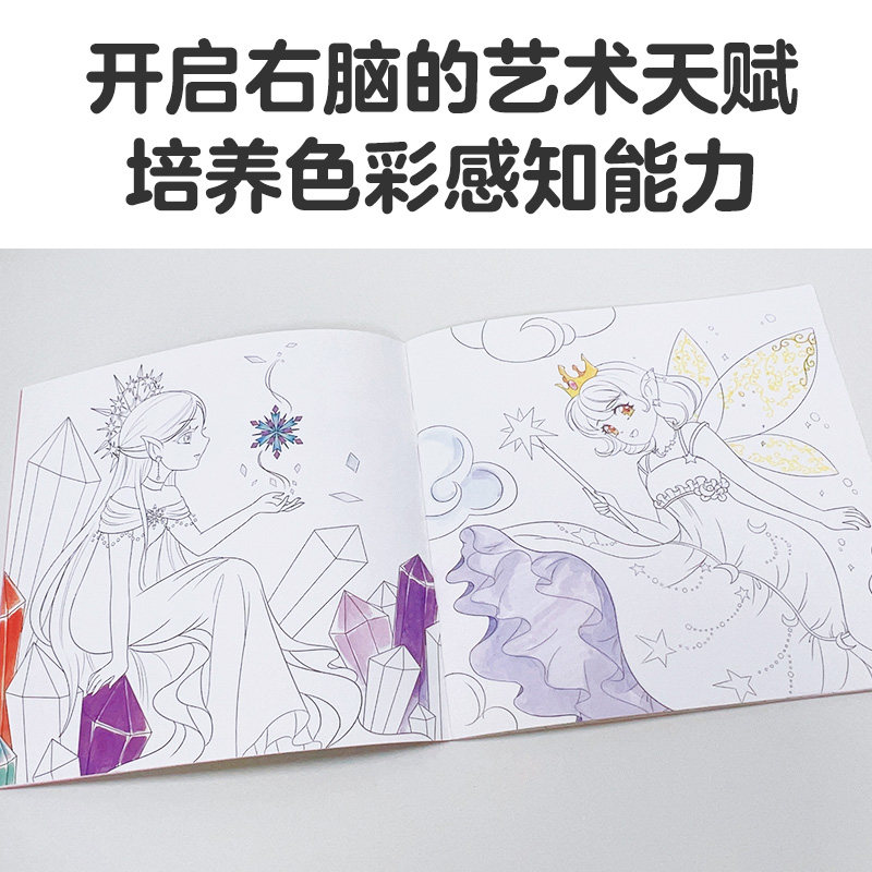 天猫爱德少儿 创意涂色乐园公主仙境里的公主涂色画本绘画册画画本公主换装涂色女孩儿童趣味卡通涂色画3-6岁简笔画宝宝学画早教益智