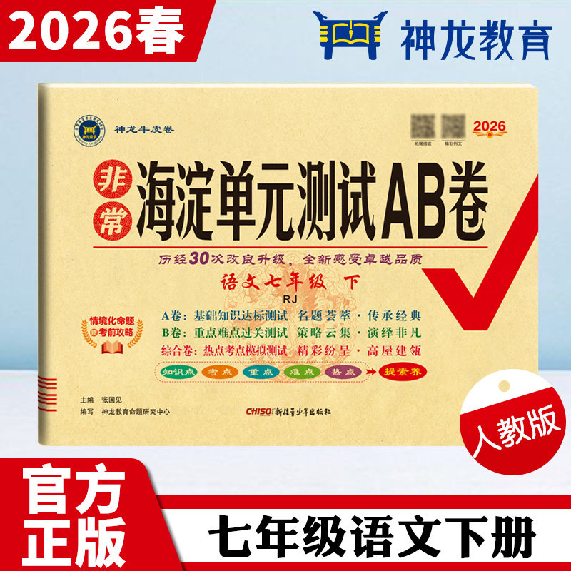 《2026春海淀单元测试AB卷》是专为初一至初三学生设计的同步练习与复习资料,涵盖语文、数学、英语、物理、生物、地理、历史、道德与法治等全学科。试卷分A、B两卷,A卷夯实基础,B卷提升能力,兼顾不同层次学生的学习需求。内容紧扣最新课标与教材,系统梳理单元知识要点,配有期中期末综合测试卷,帮助学生查漏补缺、巩固提升。试卷题型灵活多样,贴近中考命题趋势,注重核心素养培养。适用于日常单元检测、阶段复习及总复习,是提升学业成绩、备战中考的高效学习工具。