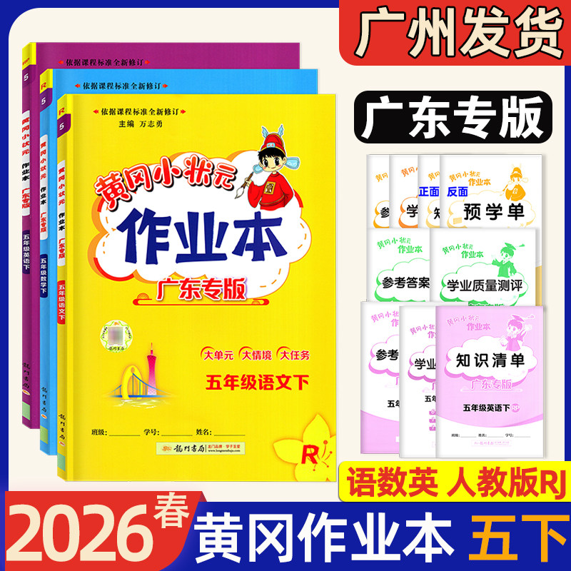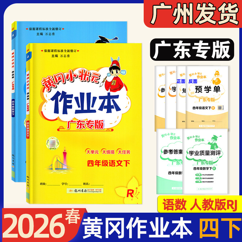 天猫广东专版2026春新版黄冈小状元作业本语文数学英语科学一年级二年级三年级四五六年级下册广东专用版小学123456上下同步课本练习册