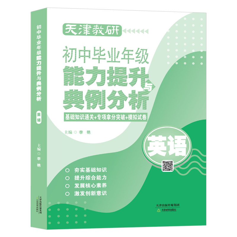 《天津教研·初中毕业年级能力提升与典例分析》系列由天津教育出版社出版,专为九年级学生中考复习打造,涵盖语文、数学、英语、物理、化学、历史、道德与法治七大学科。丛书紧扣天津市中考命题趋势,系统梳理核心知识点,精选典型例题,注重解题思路与方法指导,强化能力迁移与综合运用。每科均设专题突破、真题解析与模拟训练,帮助学生夯实基础、提升应试能力。内容编排科学,讲练结合,既适合课堂同步复习,也便于学生自主查漏补缺,是天津地区初三师生备战中考的权威复习资料。