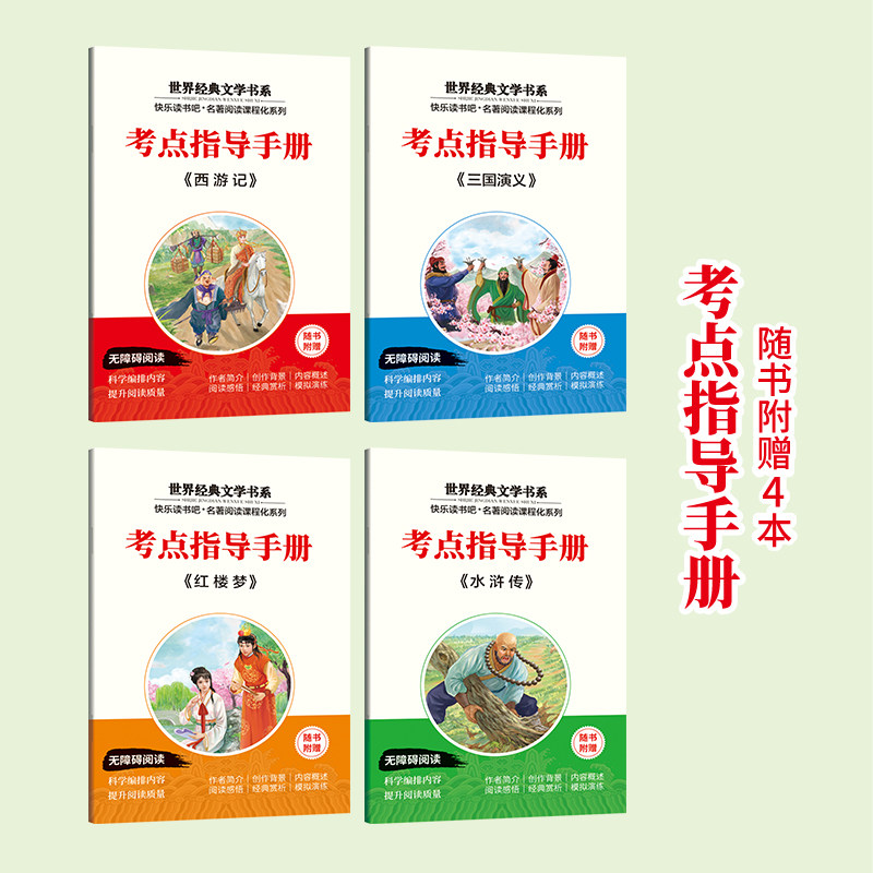 “快乐读书吧1+1导读版”五年级上下册必读课外书套装,精选《西游记》《红楼梦》《水浒传》《三国演义》四大名著,专为小学生量身打造。大开本设计,图文并茂,字体清晰,阅读更舒适。每本书配有1+1导读方案,包含课前导读、重点解析与读后思考,帮助孩子理解经典内涵,提升阅读能力。内容忠于原著精髓,语言通俗易懂,兼顾趣味性与教育性。本套书紧扣小学语文课程标准,是五年级学生拓展视野、积累文学素养的理想读本,助力孩子在快乐阅读中感受中华优秀传统文化的魅力。