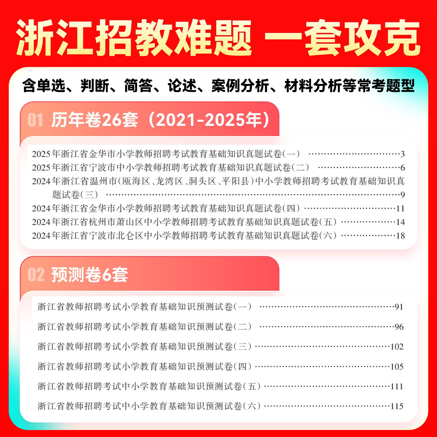 山香教育2026年浙江省小学教师招聘专用教材套装,专为备考小学教师入编考试设计,包含《教育基础知识》与《历年真题押题试卷》两本核心资料。教材紧扣浙江省考纲,系统梳理教育学、心理学、教育法规等考点,内容权威、重点突出。真题部分精选近年浙江省各地真题,并附详细解析,帮助考生熟悉题型与命题趋势;押题试卷由资深教研团队精心命制,高度模拟真实考试,强化实战能力。本套装结构清晰、实用性强,是广大考生高效备考、顺利入编的理想选择,助力实现教师梦想。
