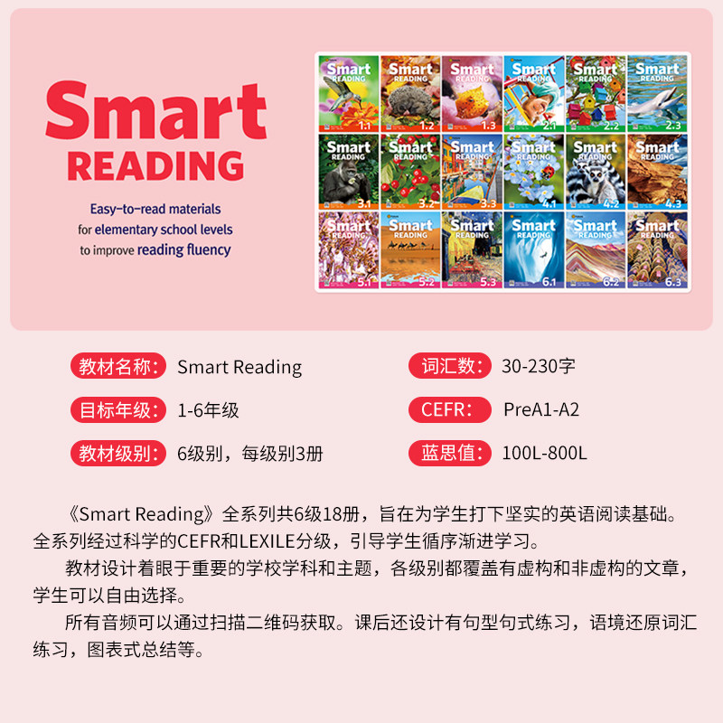 天猫原版进口 少儿英语蓝思阅读教材 Smart Reading 1 2 3 4 5 6级别 寒暑假短期英文阅读课程提高单词积累量读写分级阅读