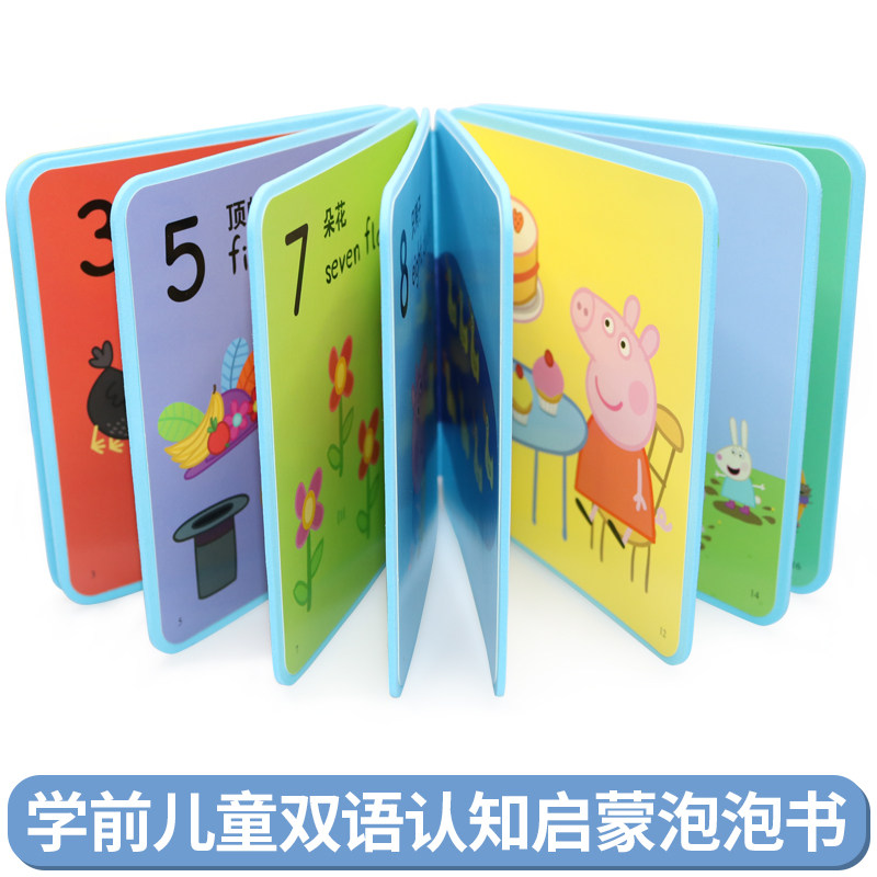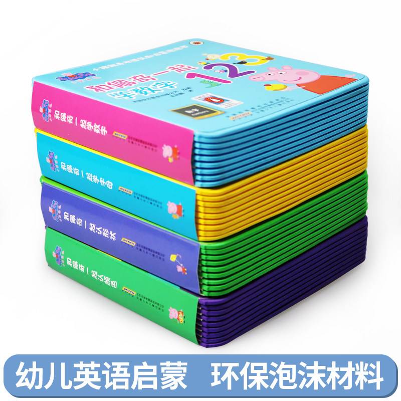 天猫小猪佩奇双语认知启蒙泡泡书全套4册0-3岁宝宝启蒙早教书中英双语认知启蒙绘本撕不烂婴儿翻翻书幼儿和佩奇一起轻松学字母数字启蒙