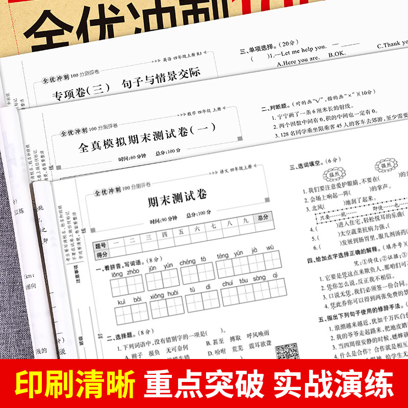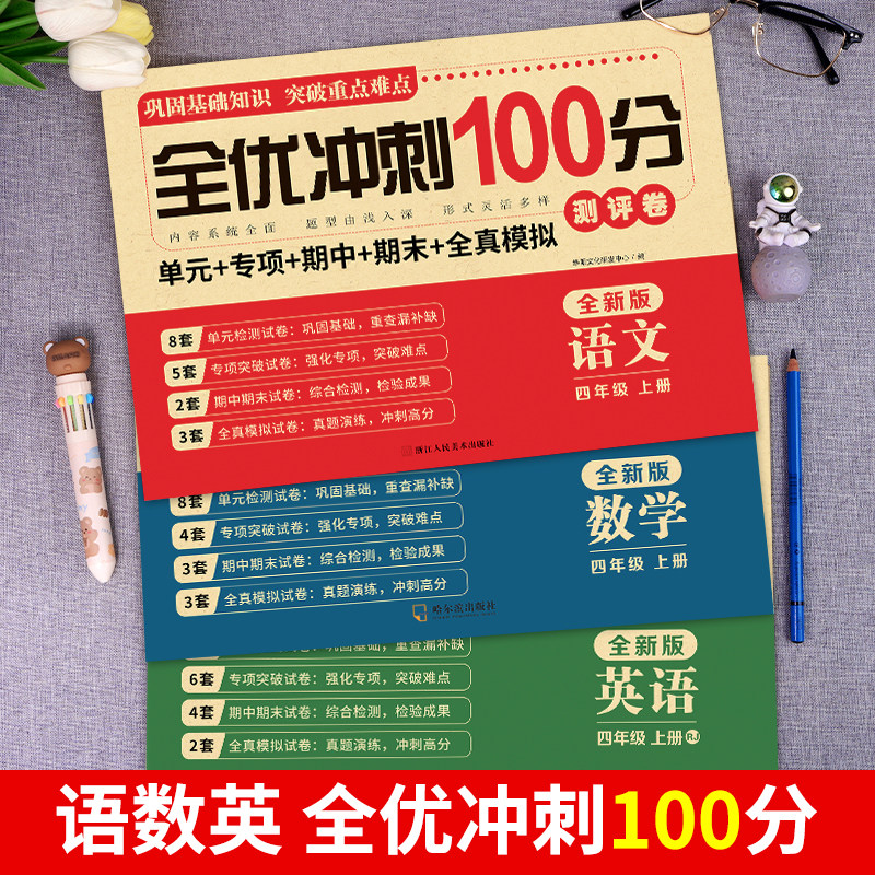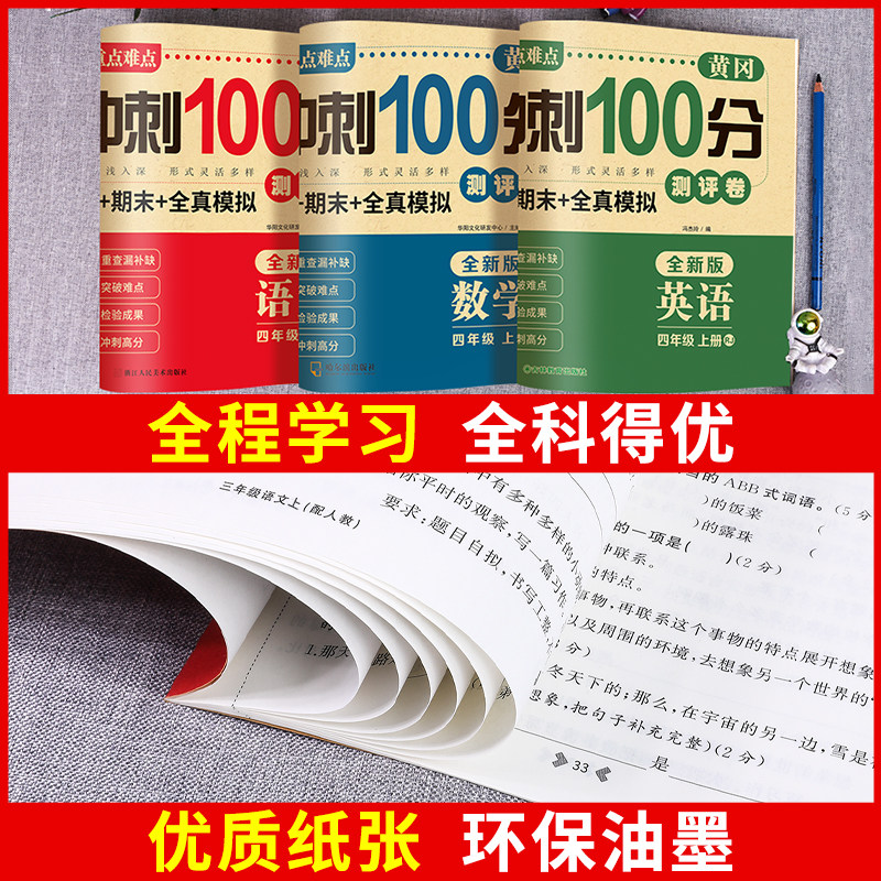 天猫四年级上册下册黄冈试卷测试卷全套 语文数学英语上册人教版 上学期课课练教材同步训练小学期末冲刺卷练习题同步练习册语数英试卷